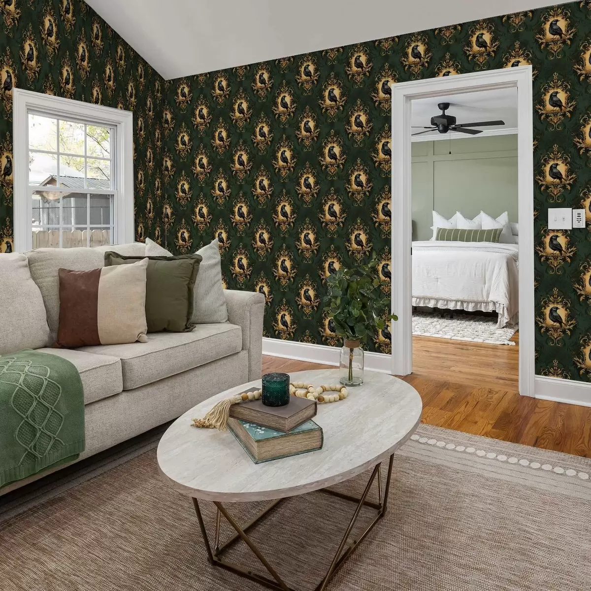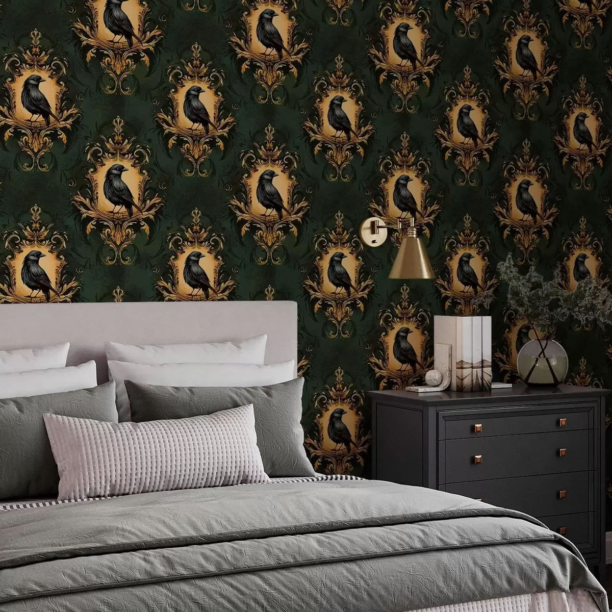 Papel tapiz Cuervo en un marco sobre fondo verde Nr. a00105