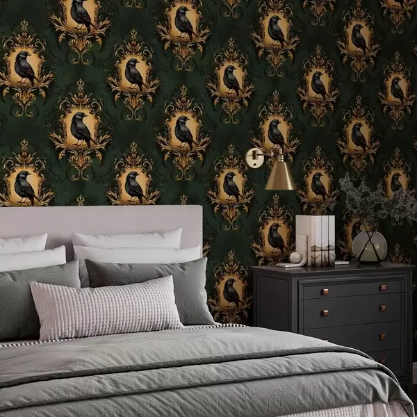 Papel tapiz Cuervo en un marco sobre fondo verde Nr. a00105