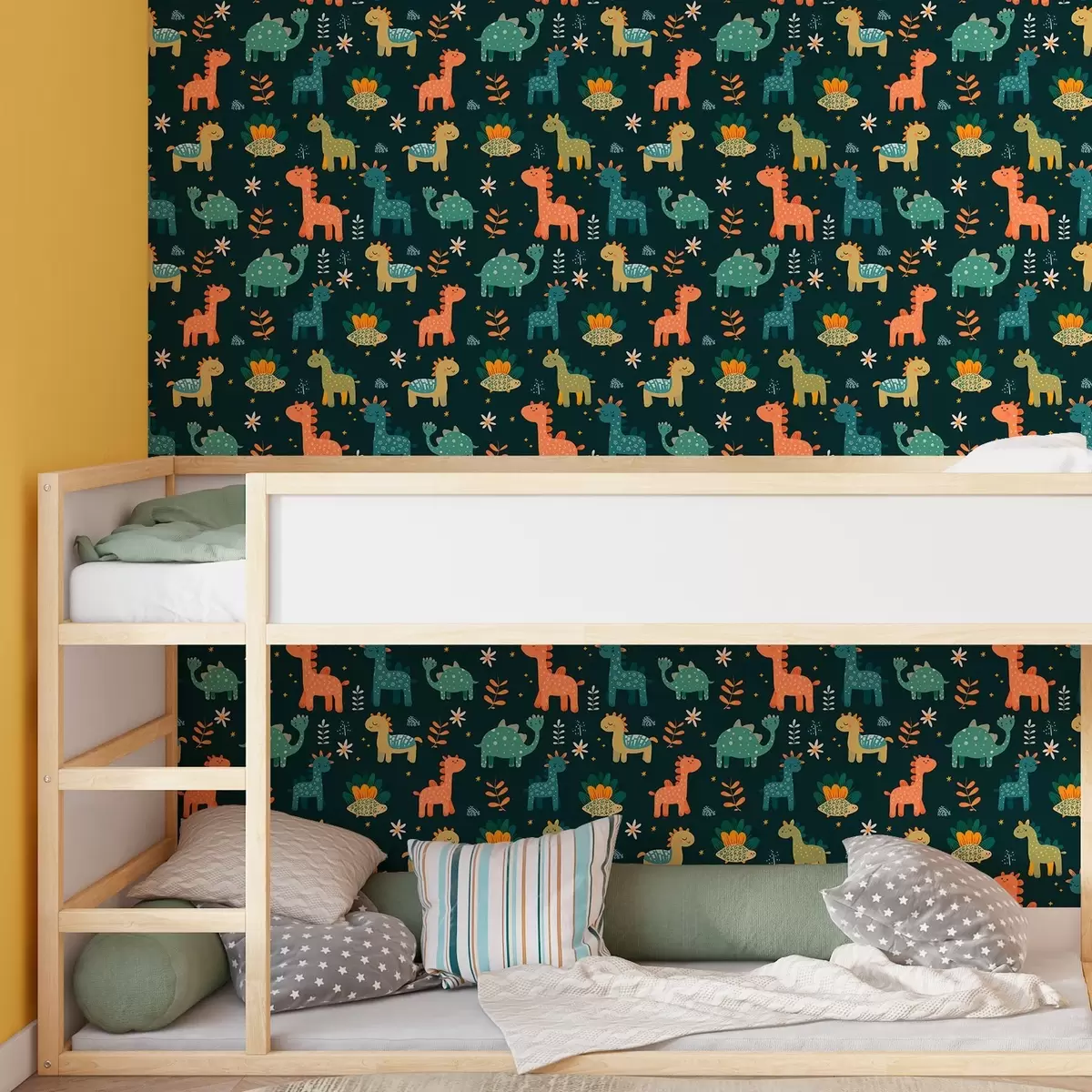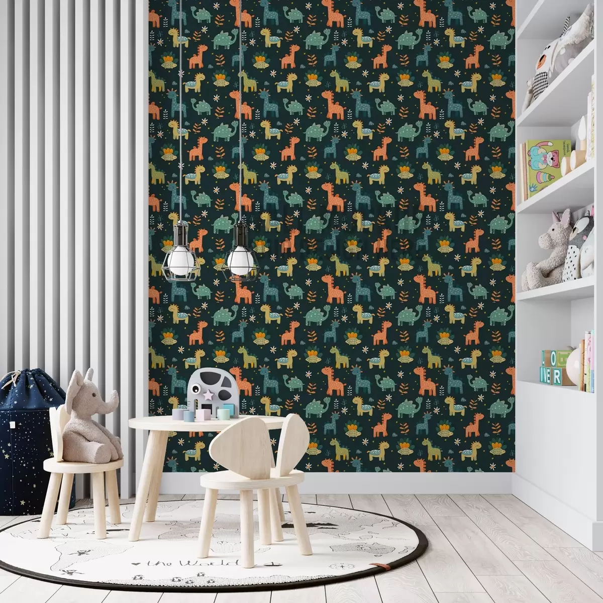 Papel tapiz Divertidos dinosaurios en colores pastel sobre fondo oscuro Nr. a00125v2