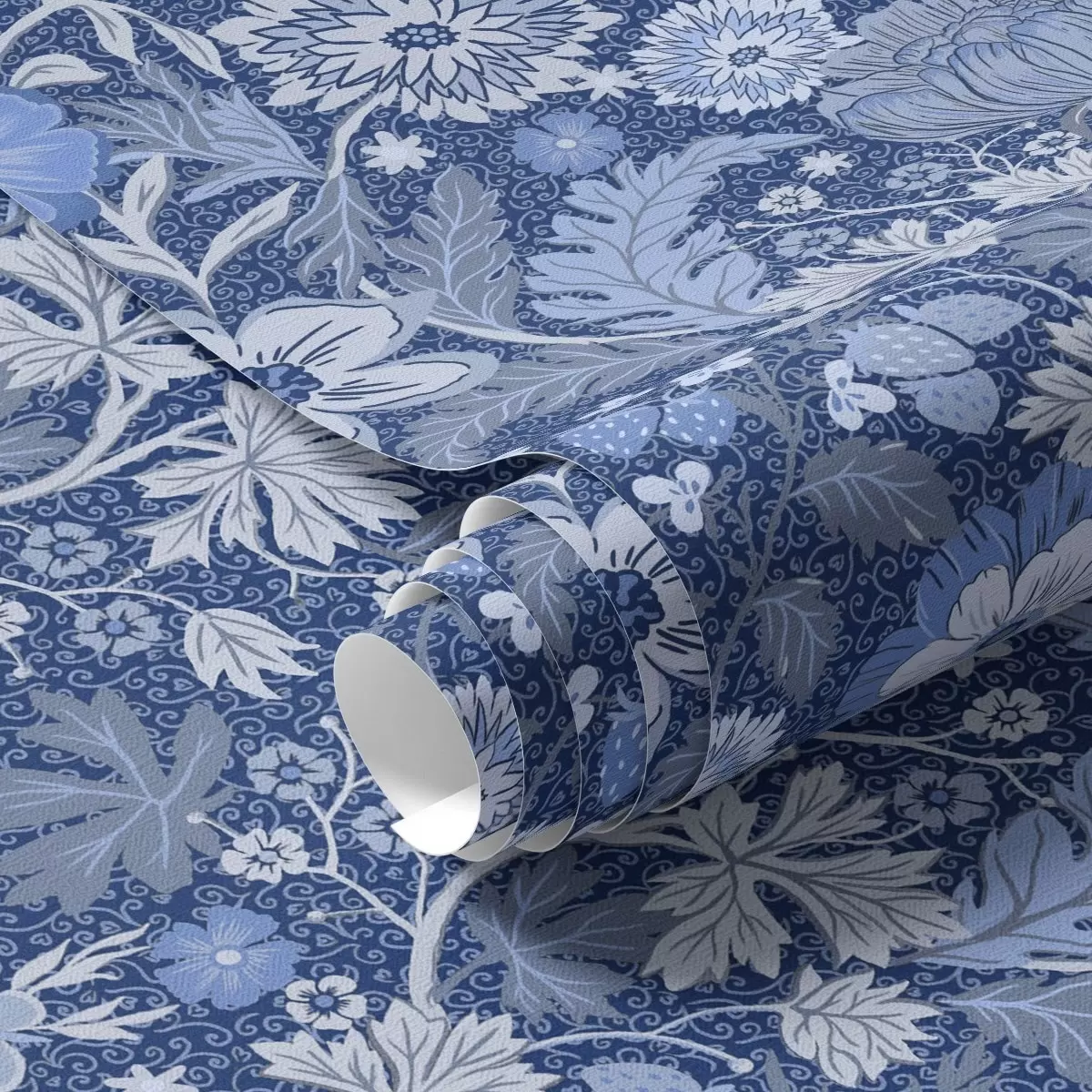 Papel tapiz Estampado botánico azul de estilo vintage Nr. a00145v2