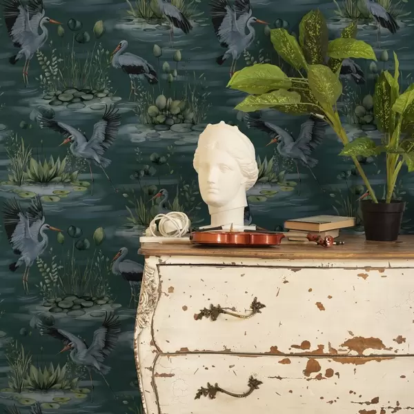 Papel tapiz Escenas con garzas sobre fondo de estanques y nenúfares Nr. a00202