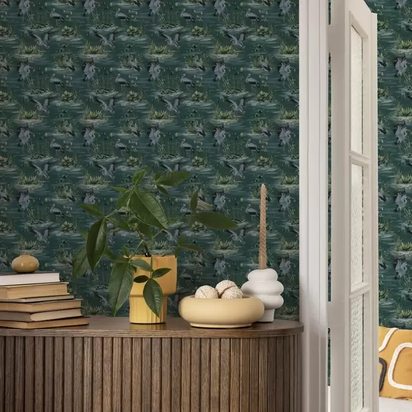 Papel tapiz Escenas con garzas sobre fondo de estanques y nenúfares Nr. a00202
