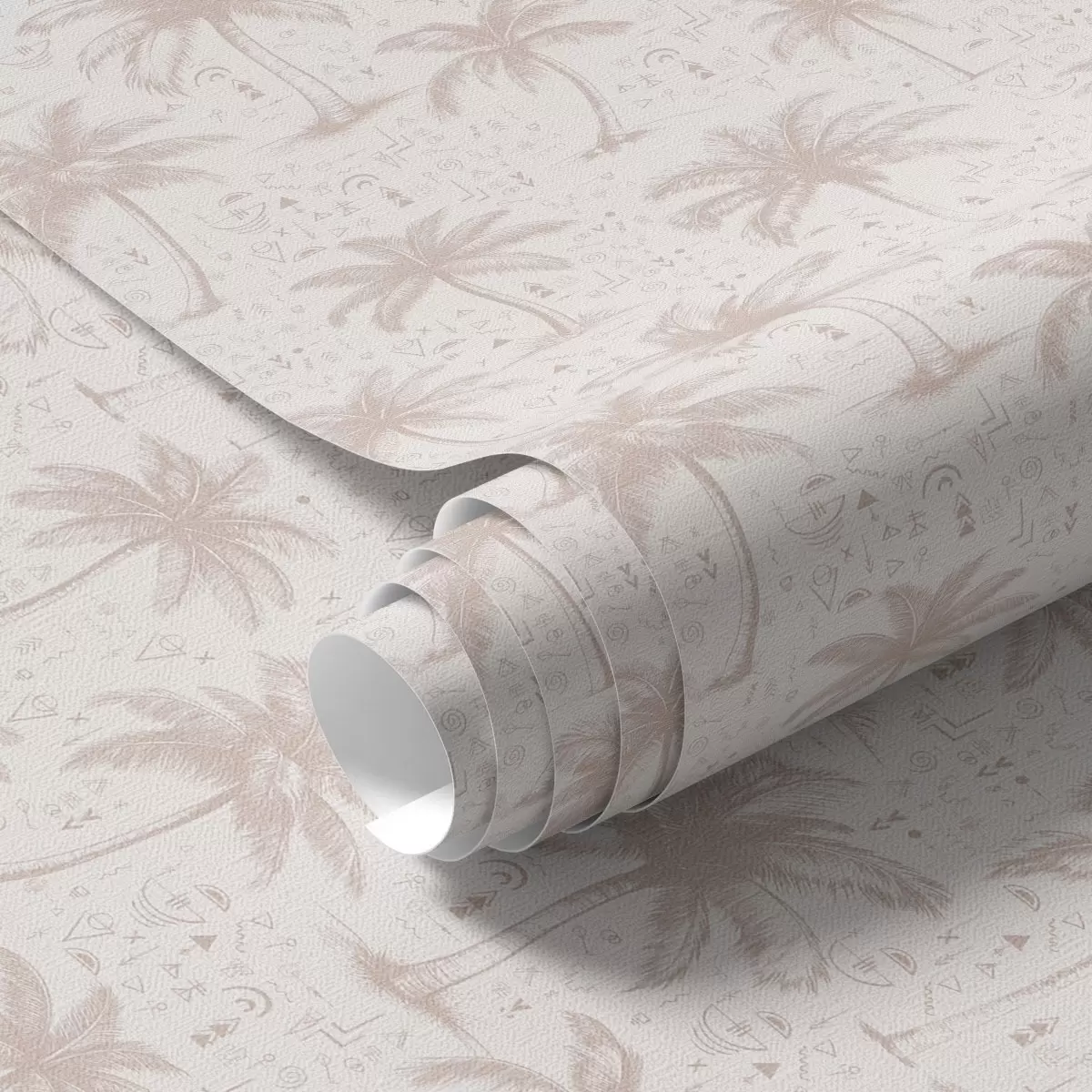 Papel tapiz Palmeras con símbolos étnicos, tono rosa pastel Nr. a00213
