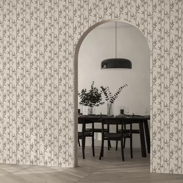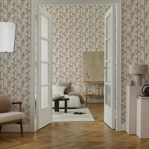 Papel tapiz Estampado de bambú beige con hojas de estilo japonés Nr. a00236