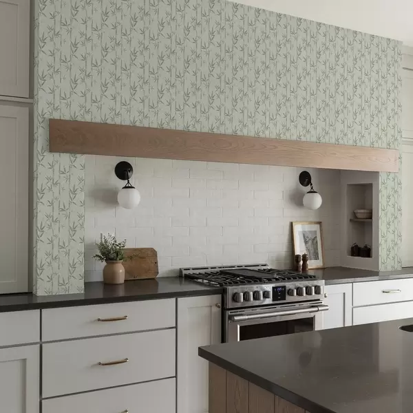 Papel tapiz Bambú verde claro sobre fondo pastel suave Nr. a00236v1