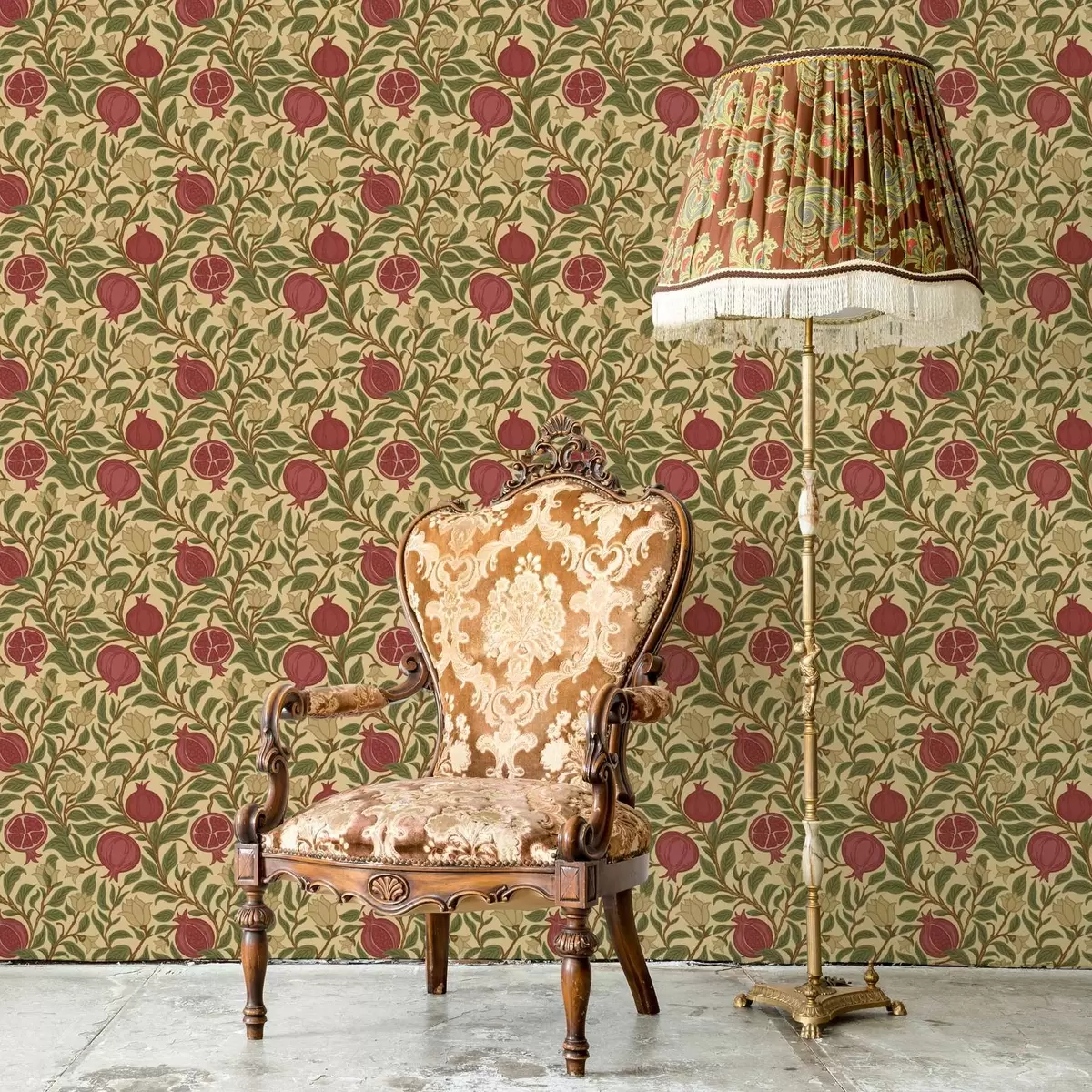 Papel tapiz Granadas y flores al estilo de William Morris Nr. a00240