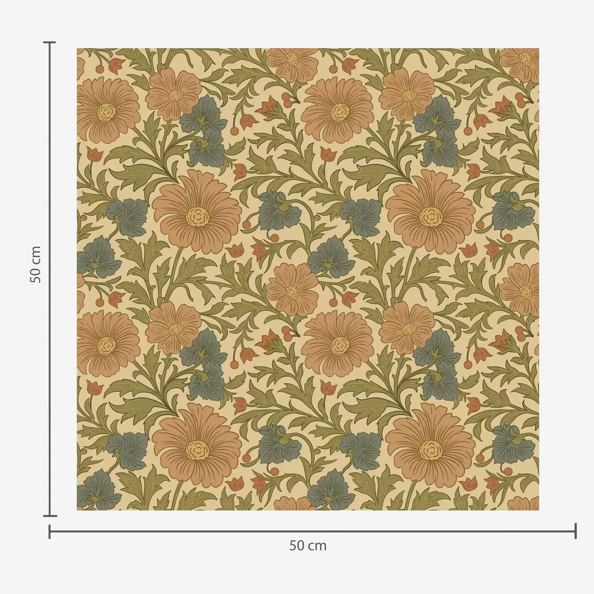 Papel tapiz Motivo retro con flores naranjas y azules Nr. a00245