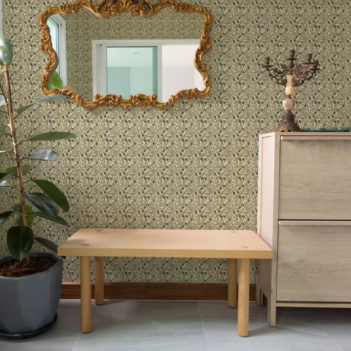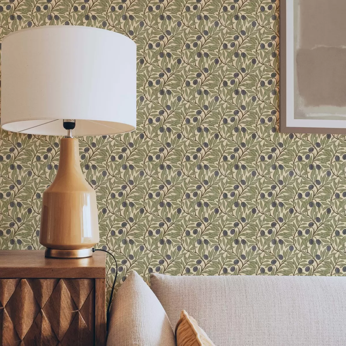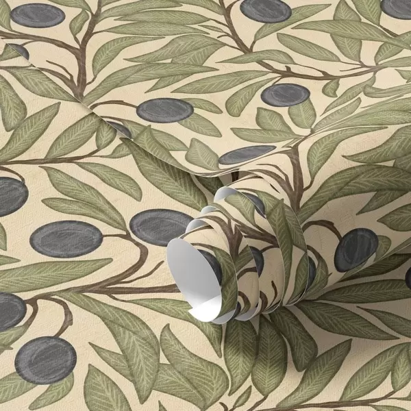 Papel tapiz Aceitunas en rama en una cálida paleta de olivos Nr. a00246