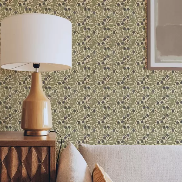 Papel tapiz Aceitunas en rama en una cálida paleta de olivos Nr. a00246