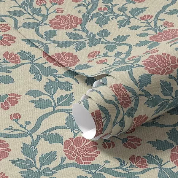 Papel tapiz Motivo retro con flores en rojo y verde Nr. a00250
