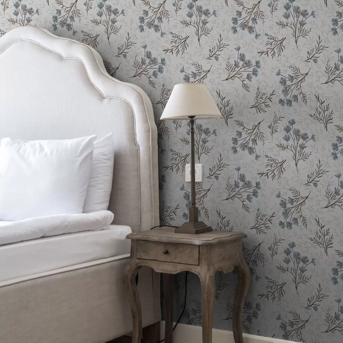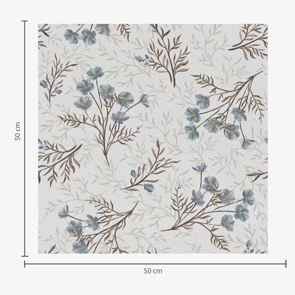 Papel tapiz Flores azules y ramas claras sobre fondo blanco Nr. a00265v1