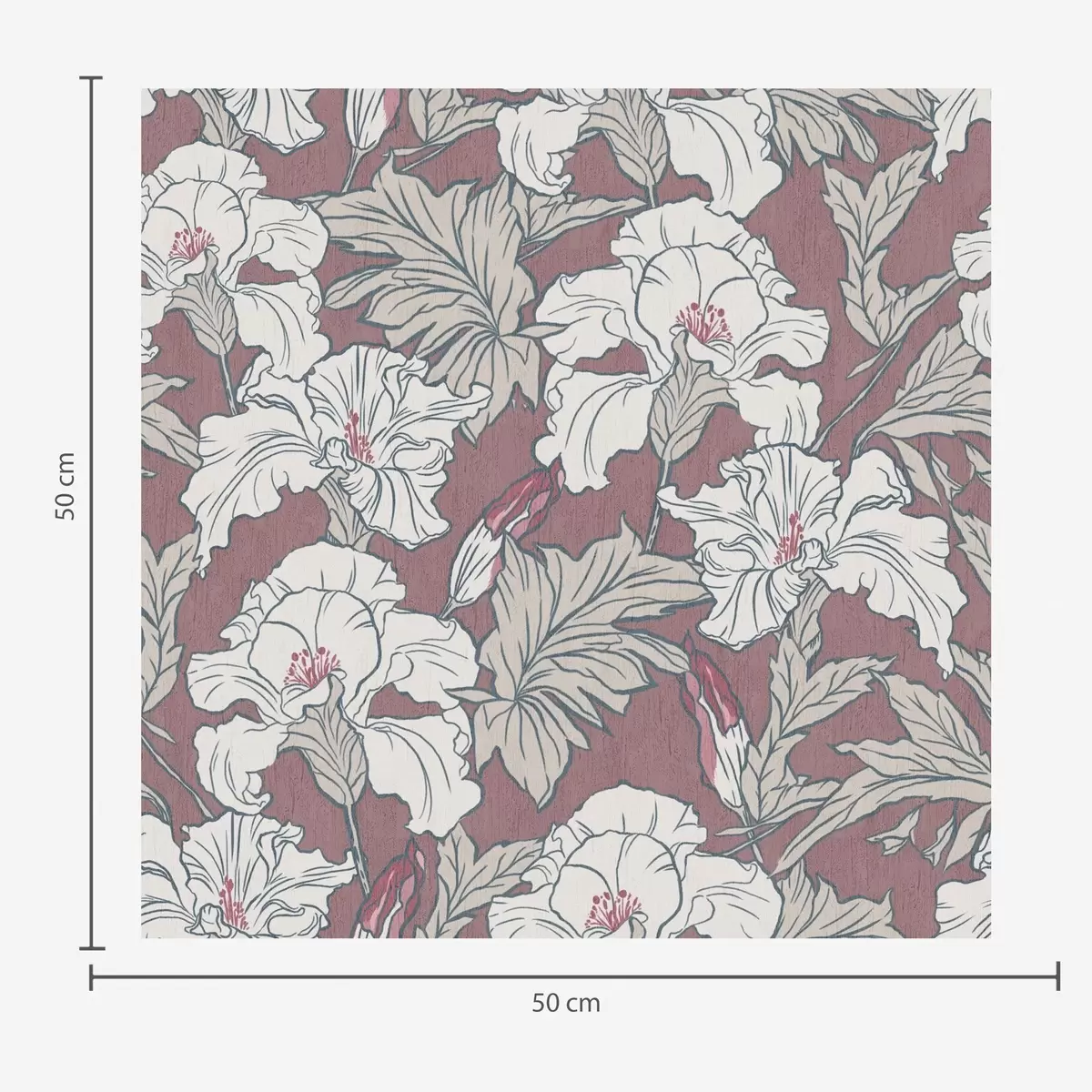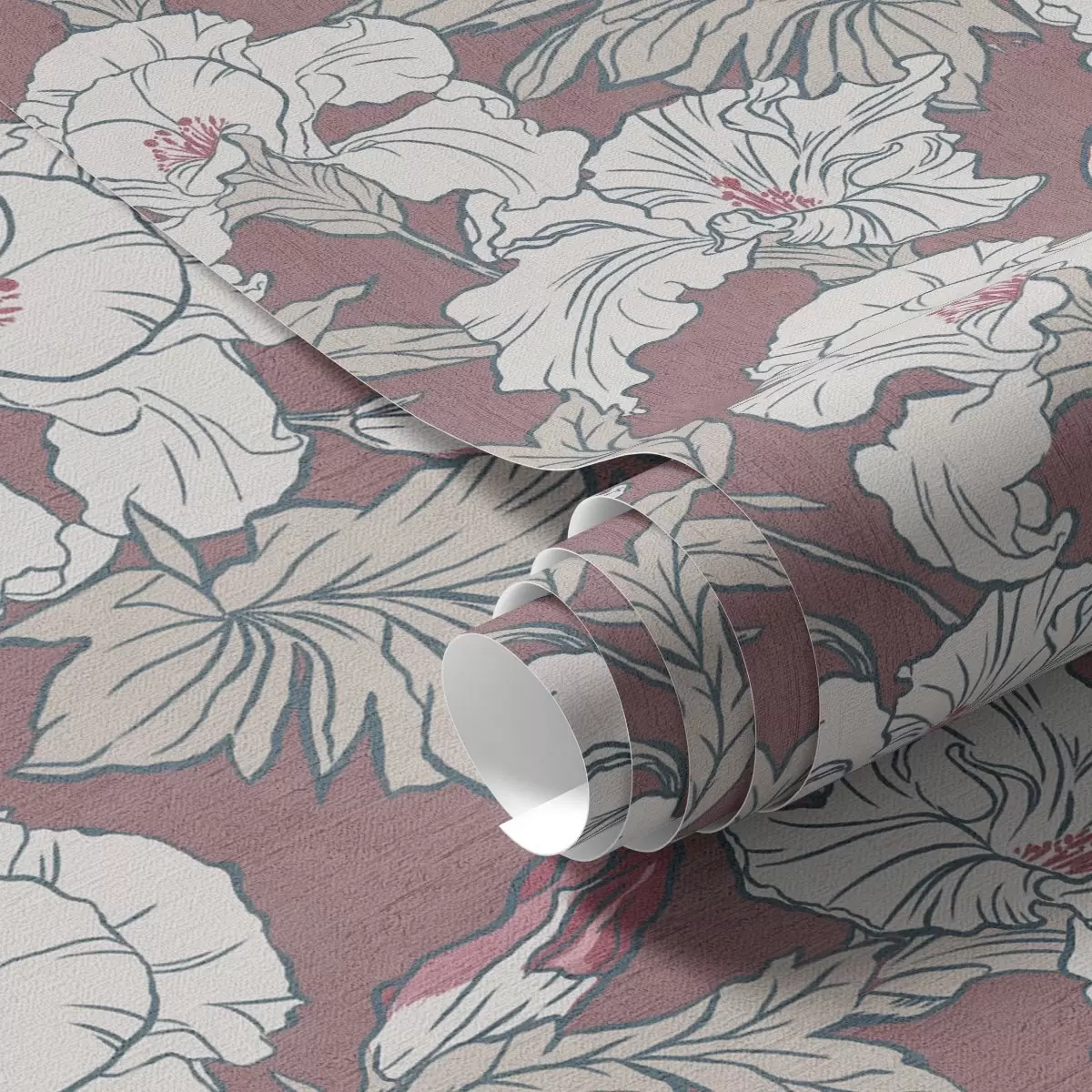 Papel tapiz Hibisco blanco sobre fondo rosa con capullos rojos Nr. a00272