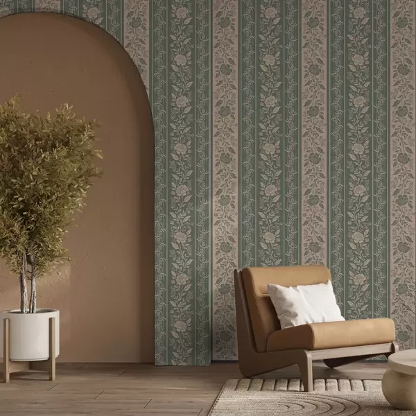 Papel tapiz Rayas verticales con estampado floral Nr. a00273