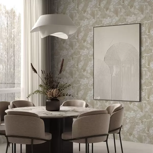 Papel tapiz Champiñones rebozuelos, dibujo lineal sobre fondo crema Nr. a00275