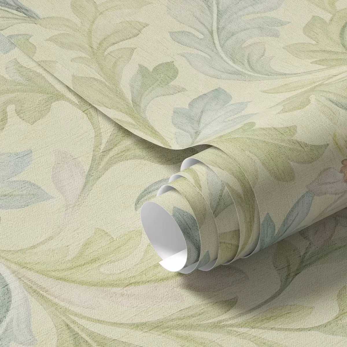 Papel tapiz Hojas vintage sobre fondo amarillento, colores suaves Nr. a00277v1
