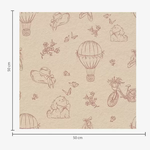 Papel tapiz Motivo rosa bebé con perro, flores y aire Nr. a00279