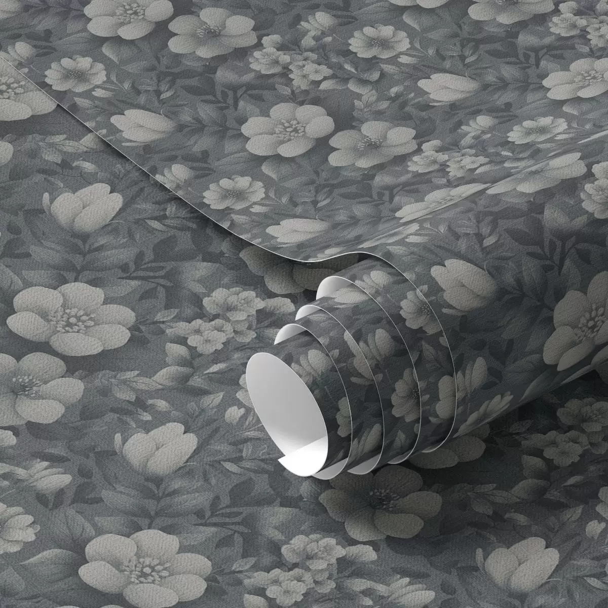 Papel tapiz Estampado azul oscuro con voluminosas flores blancas Nr. a00282