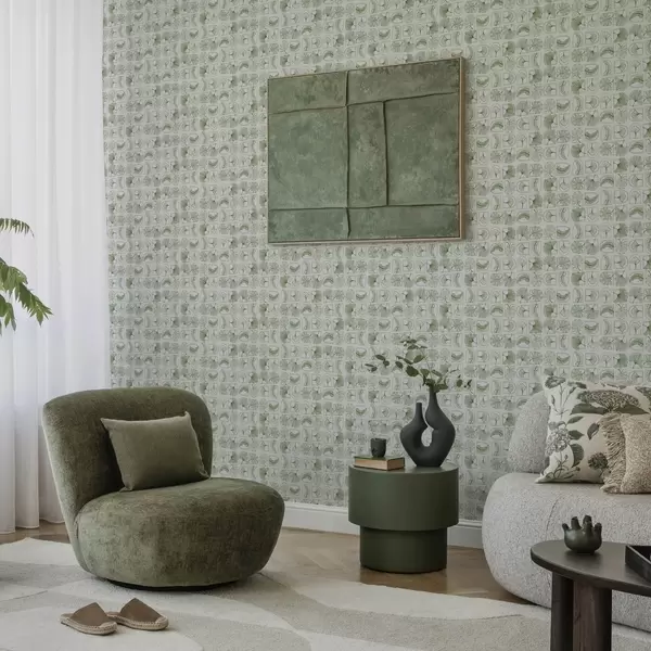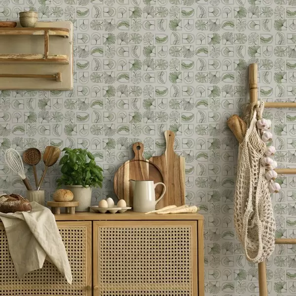 Papel tapiz Patrón gráfico con hojas verdes en cuadrados Nr. a00287
