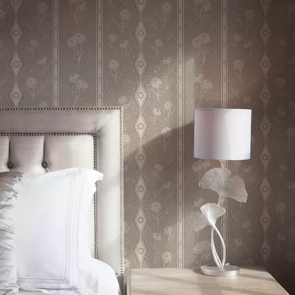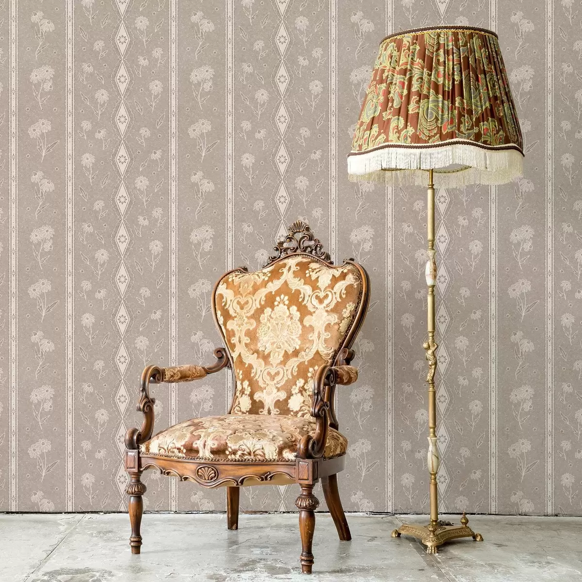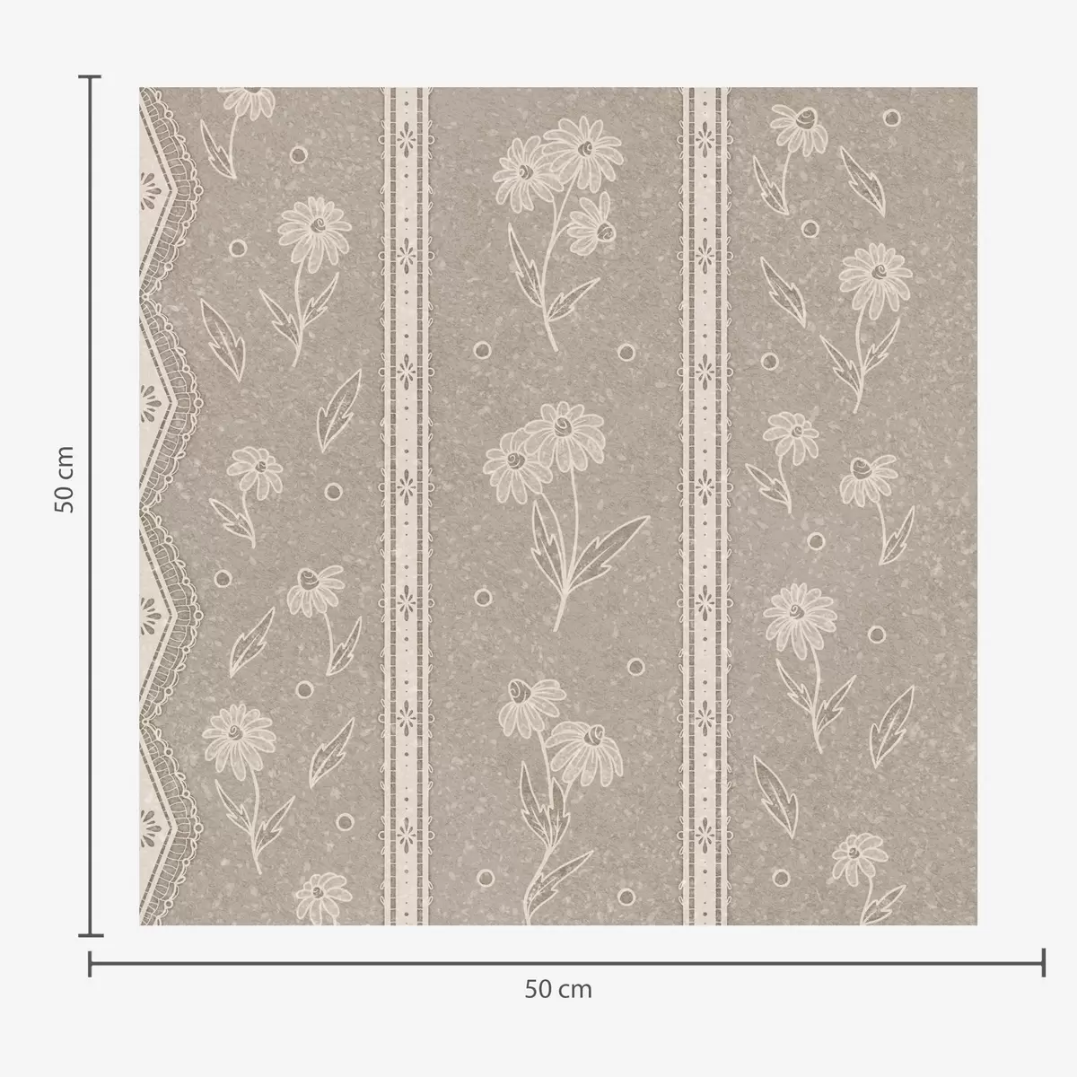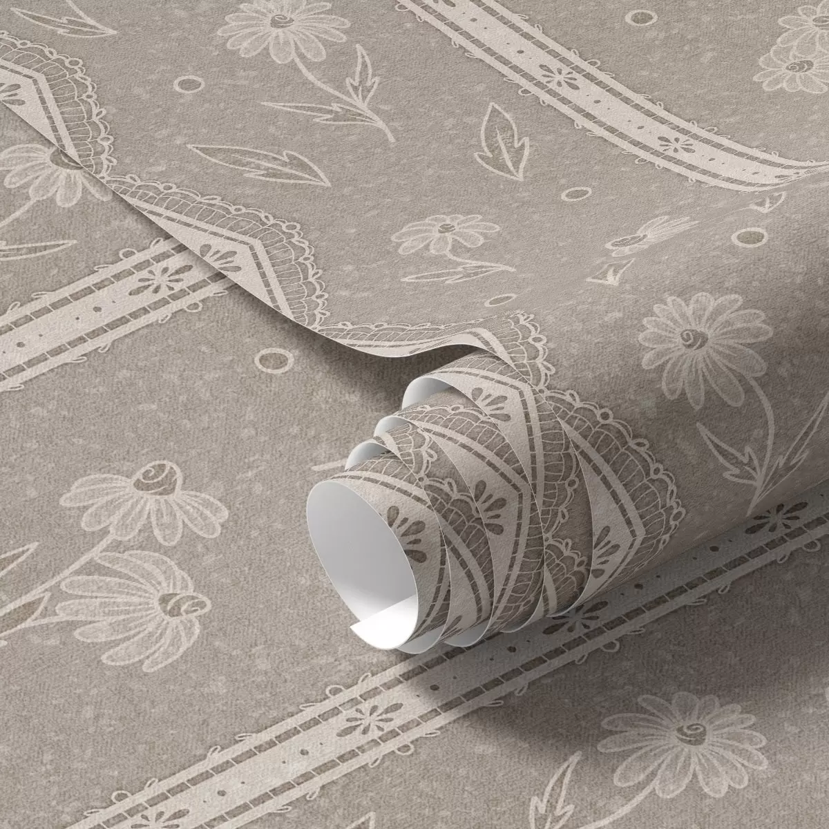 Papel tapiz Rayas con margaritas y encaje sobre fondo gris-beige Nr. a00295