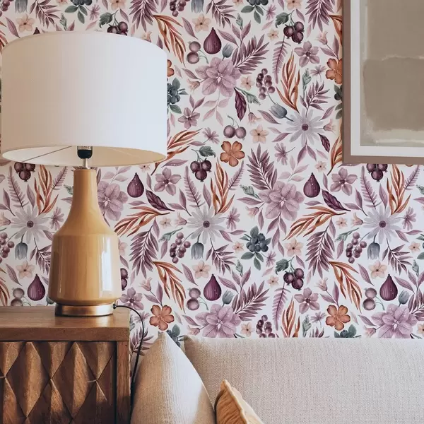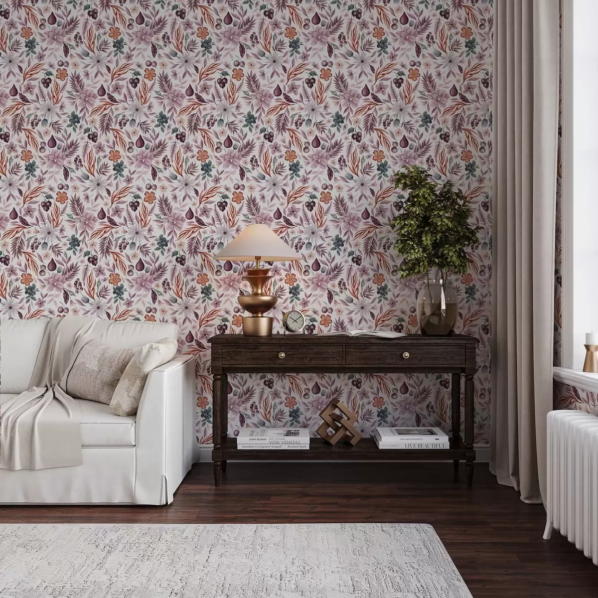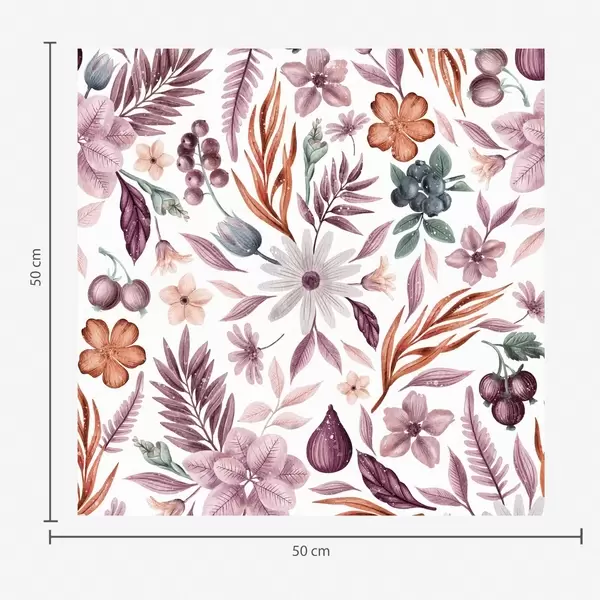 Papel tapiz Bayas, flores y hojas brillantes en estilo acuarela Nr. a00298