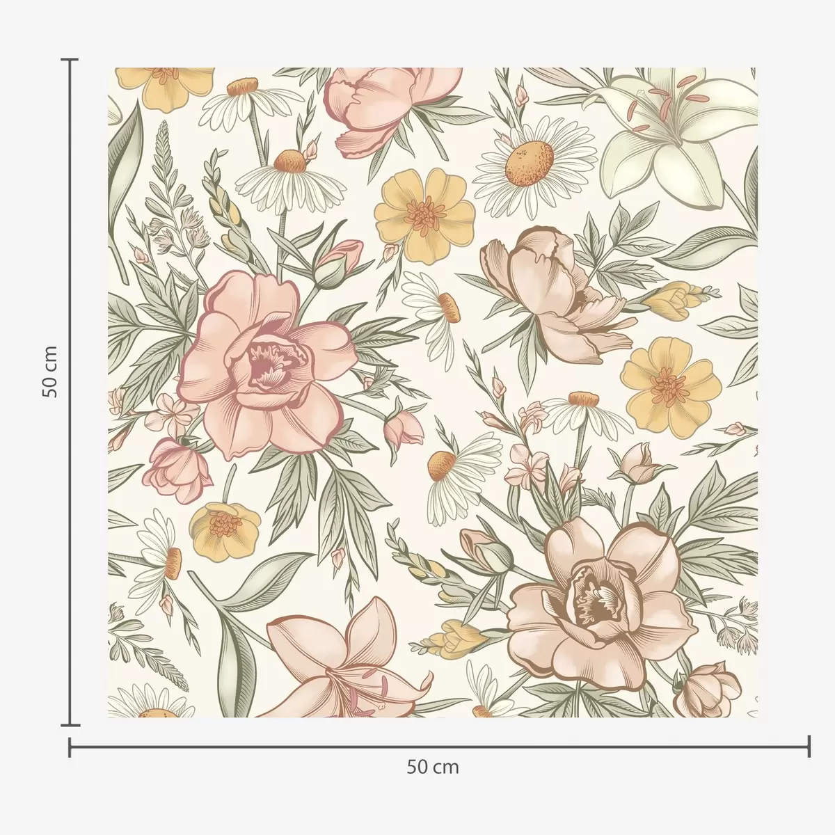 Papel tapiz Margaritas, peonías, lirios y hojas en delicados colores Nr. a00299