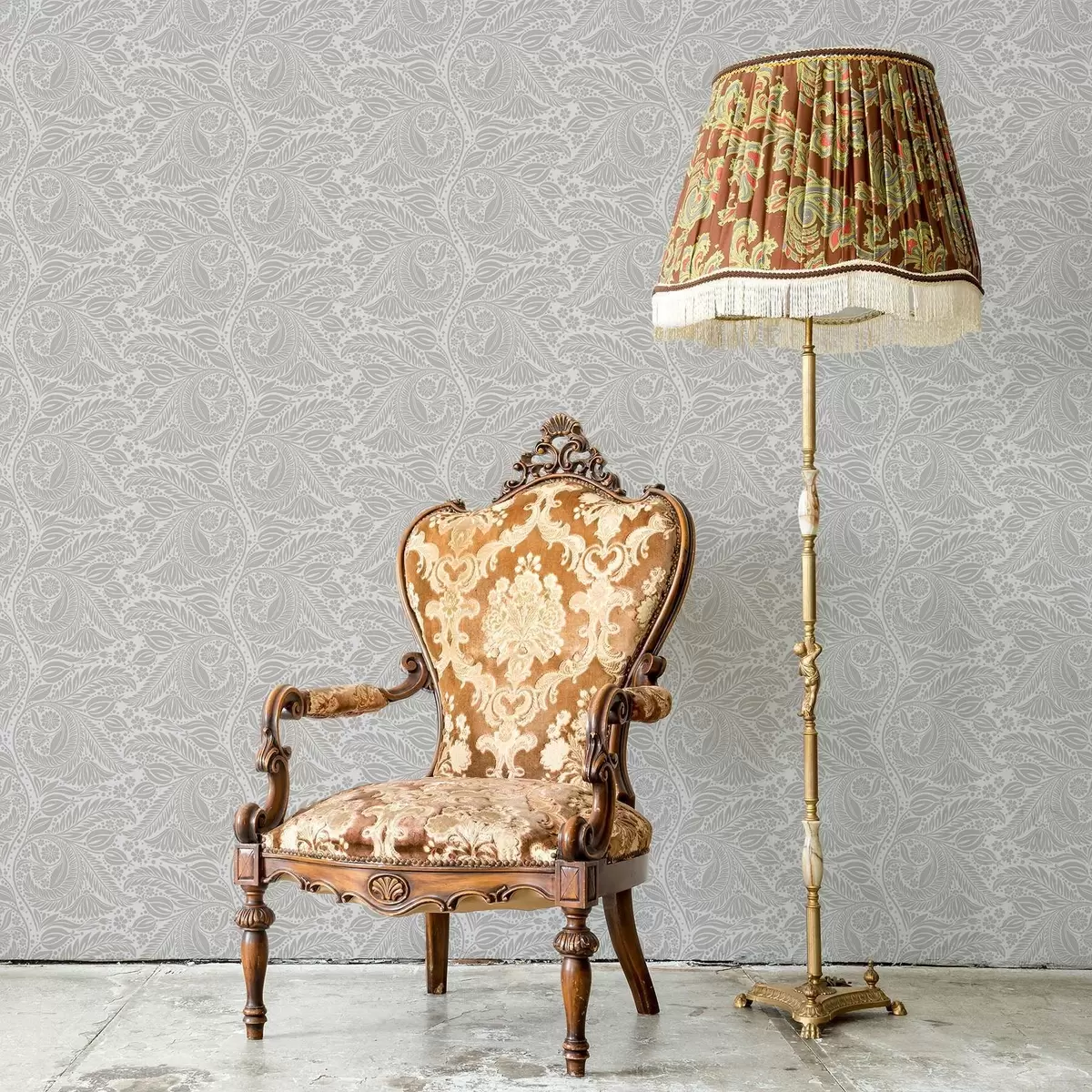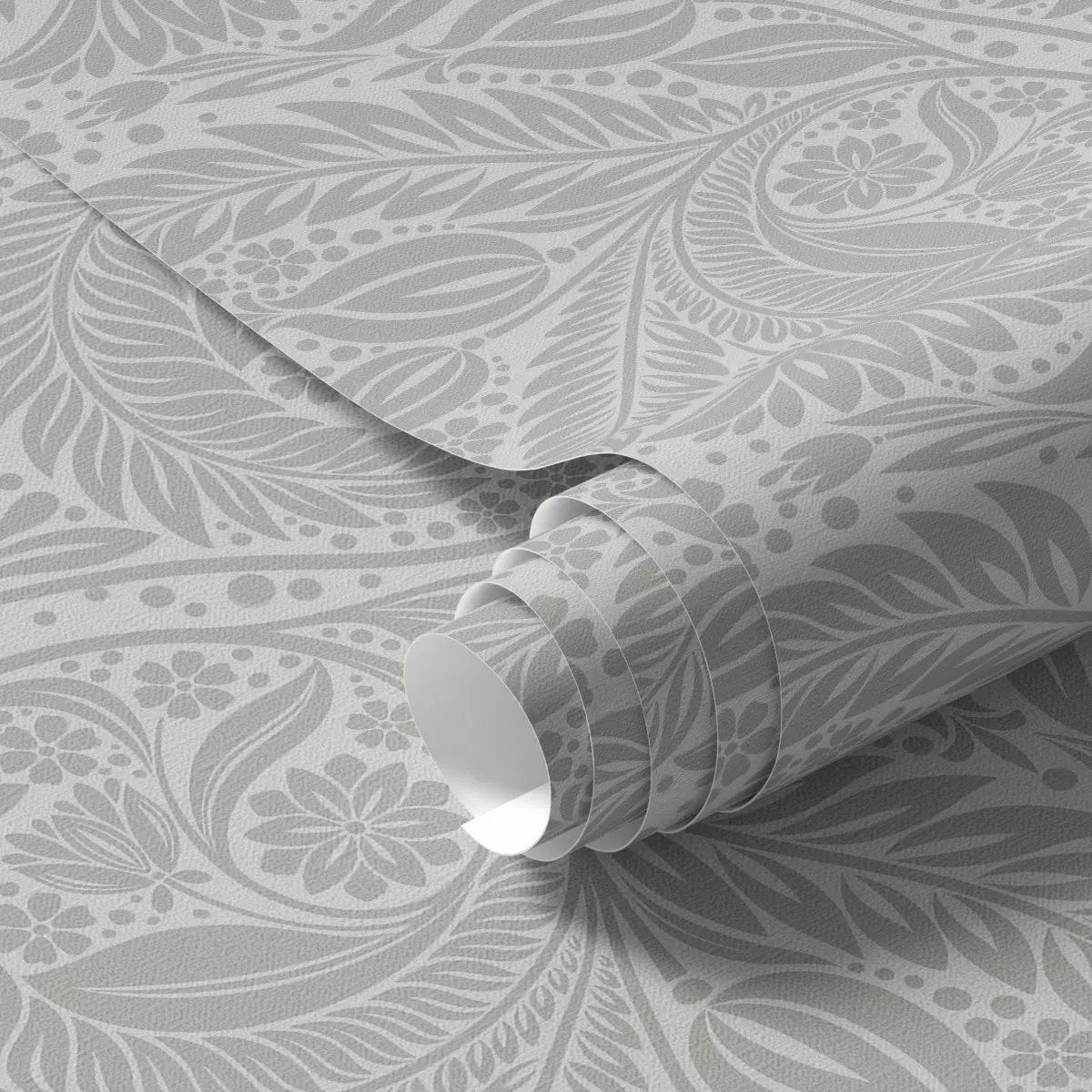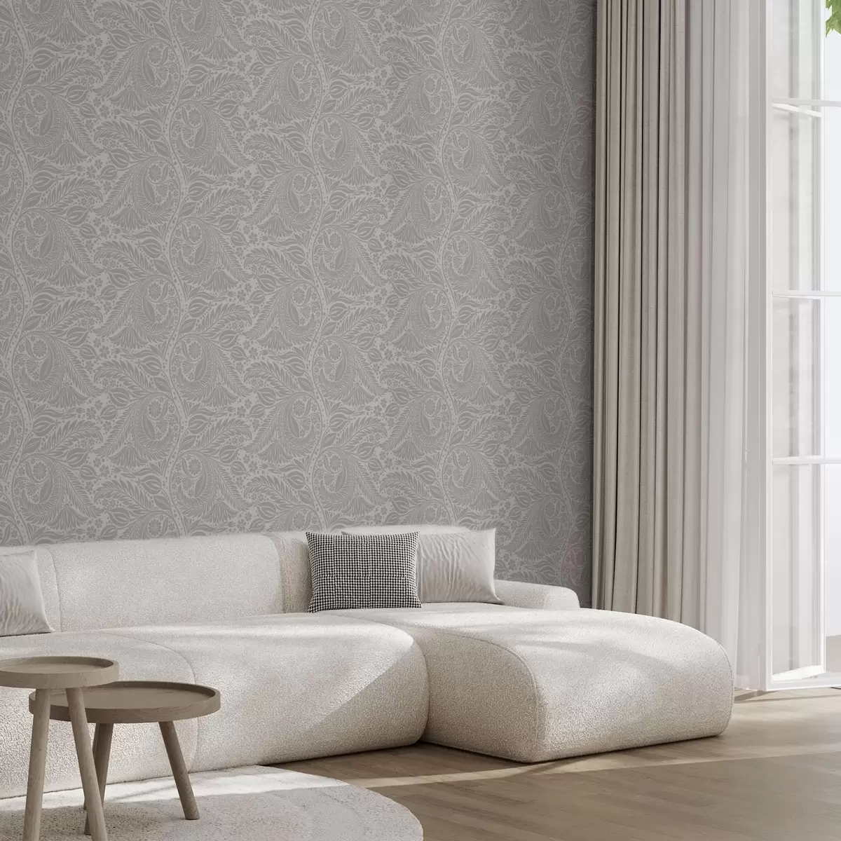 Papel tapiz Estilización folclórica gris con hojas y flores Nr. a00301