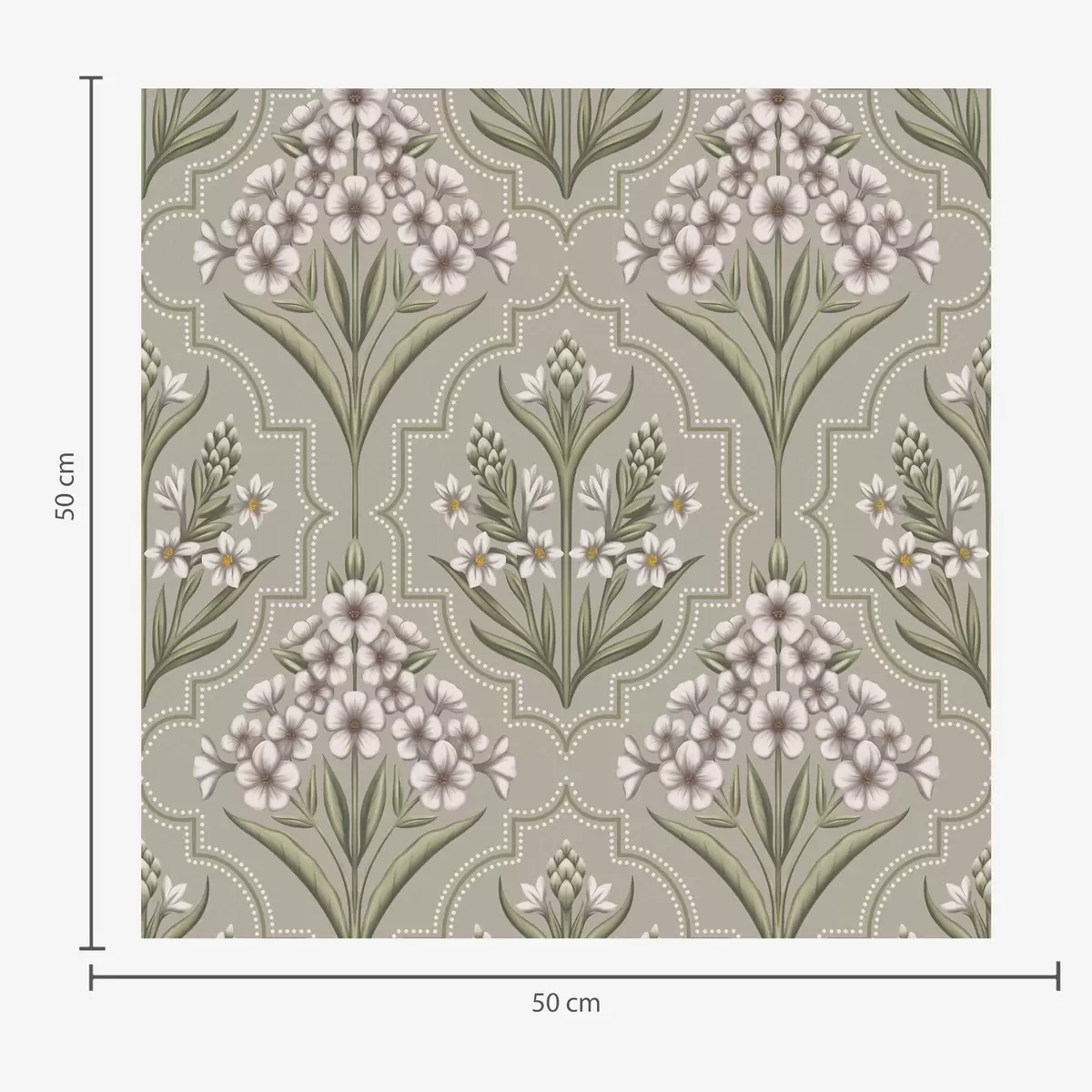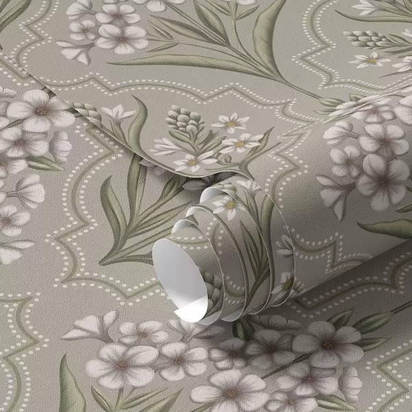 Papel tapiz Motivo simétrico de flores blancas sobre fondo gris Nr. a00302