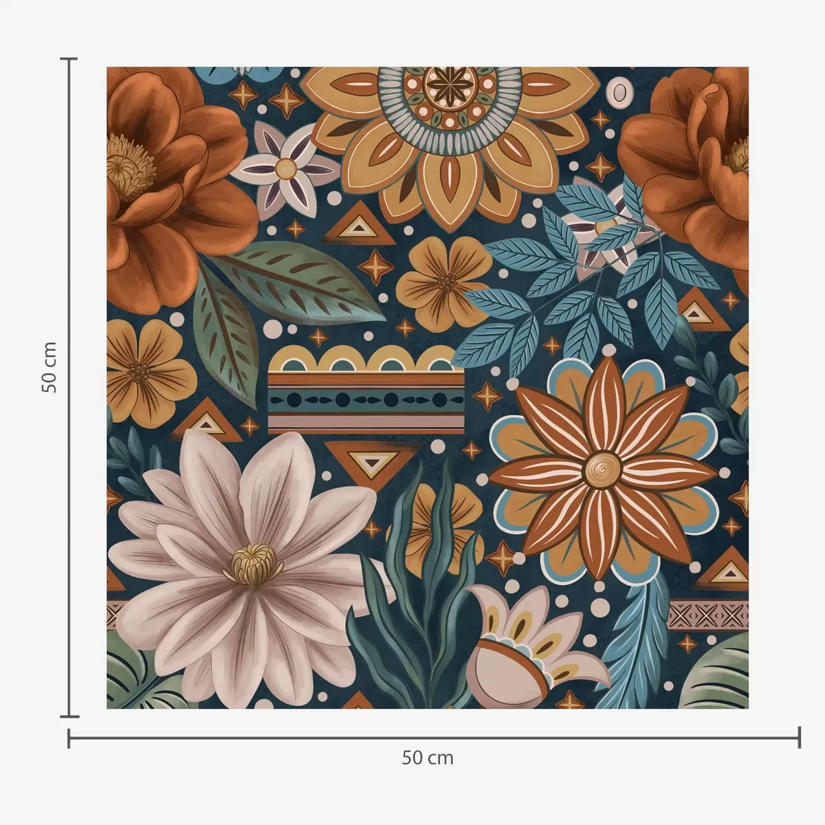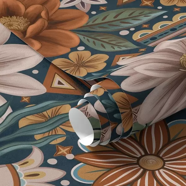 Papel tapiz Flores decorativas brillantes con elementos geométricos Nr. a00305