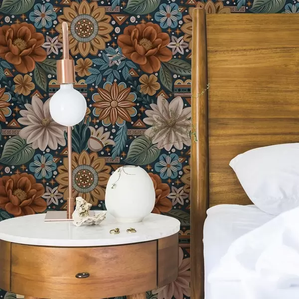 Papel tapiz Flores decorativas brillantes con elementos geométricos Nr. a00305