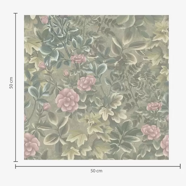 Papel tapiz Flores y hojas rosas sobre fondo verde pastel Nr. a00306