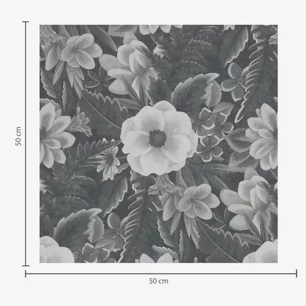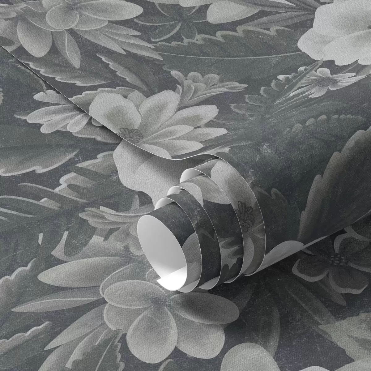 Papel tapiz Estampado floral gris y blanco con efecto retro Nr. a00307