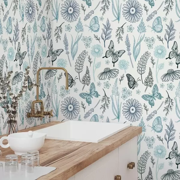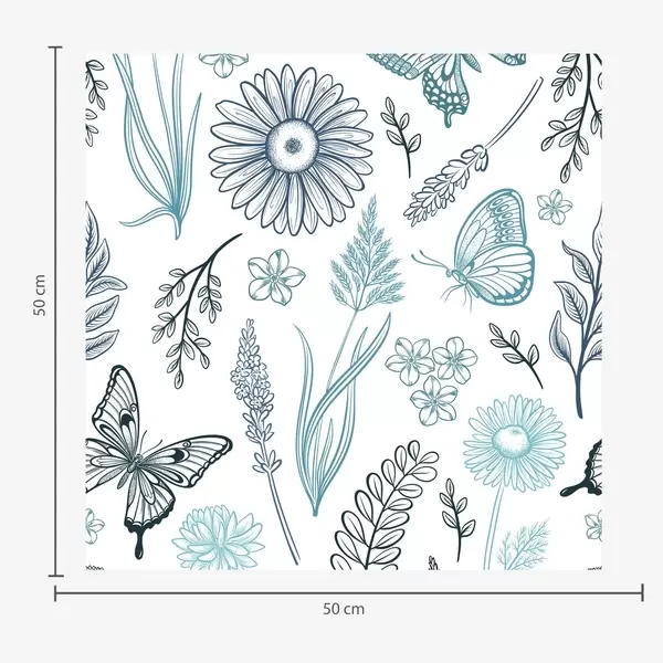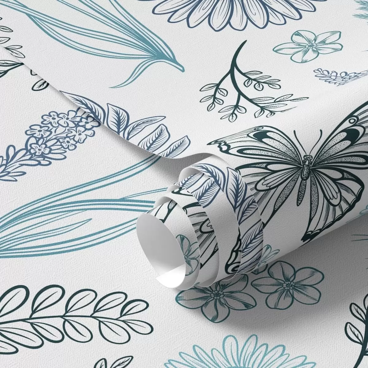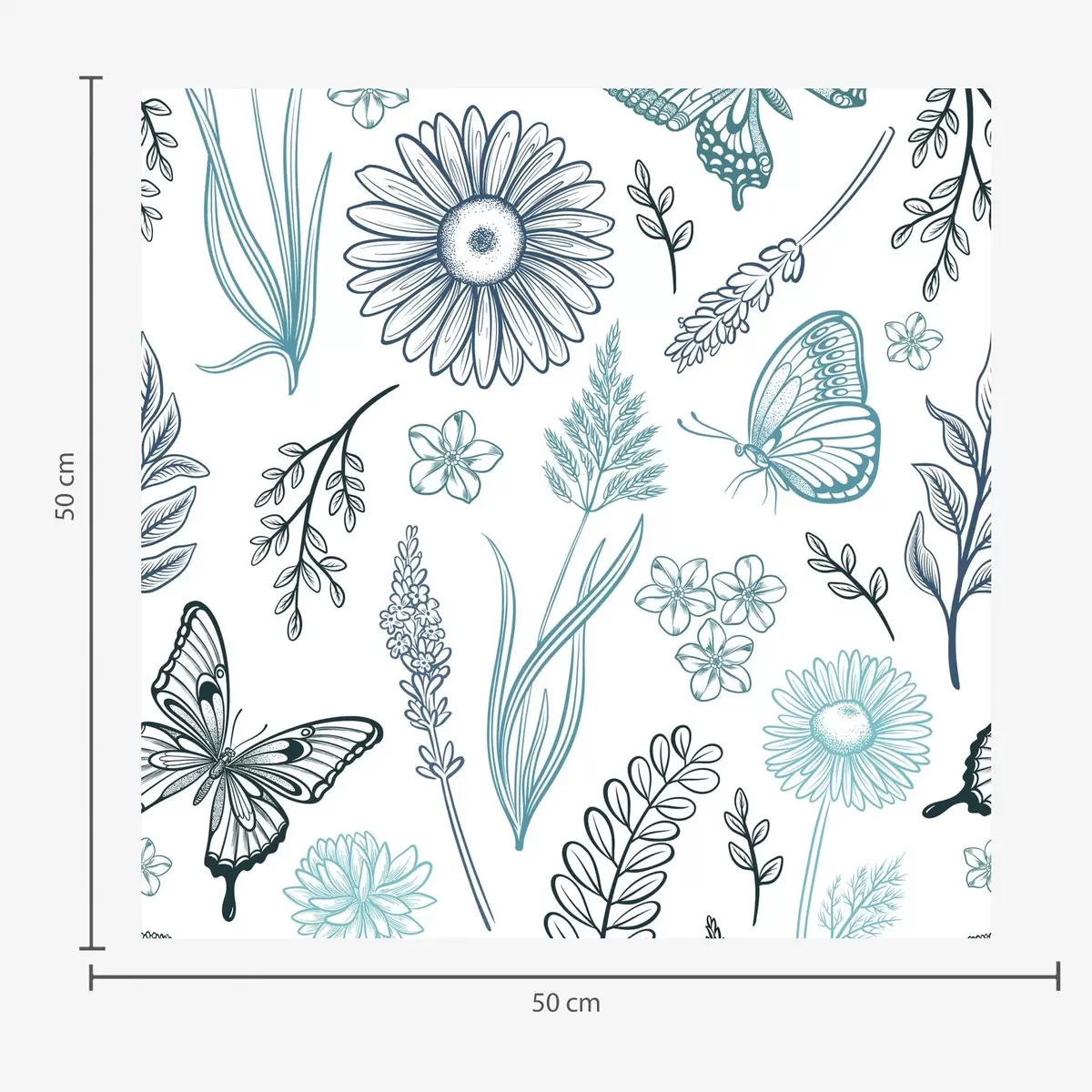 Papel tapiz Contorno de mariposas y flores en tonos azules y celestes Nr. a00311