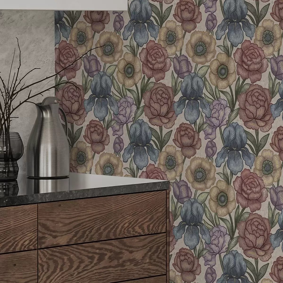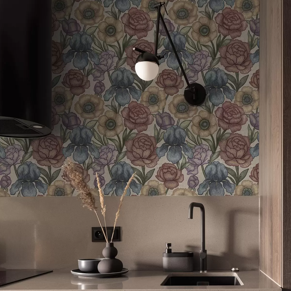 Papel tapiz Grandes ilustraciones florales con lirios y peonías Nr. a00325