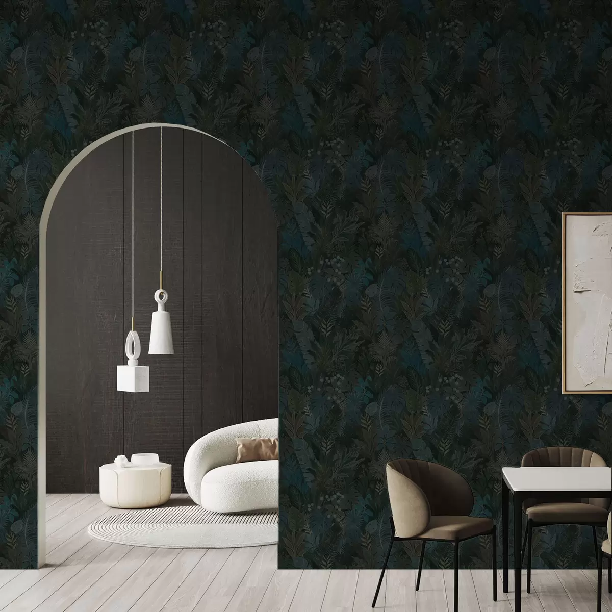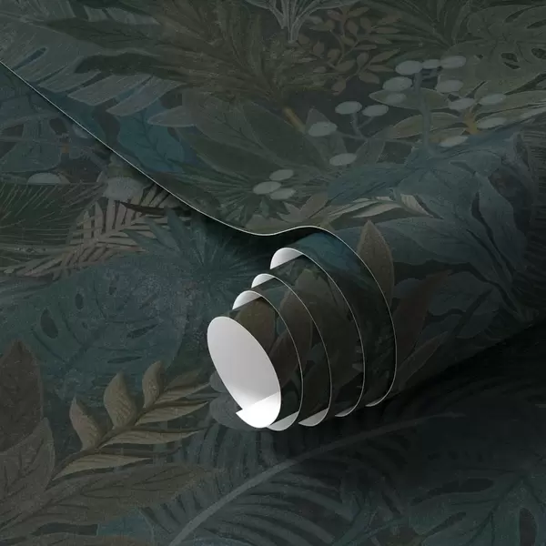 Papel tapiz Follaje tropical verde oscuro con toques azules Nr. a00327