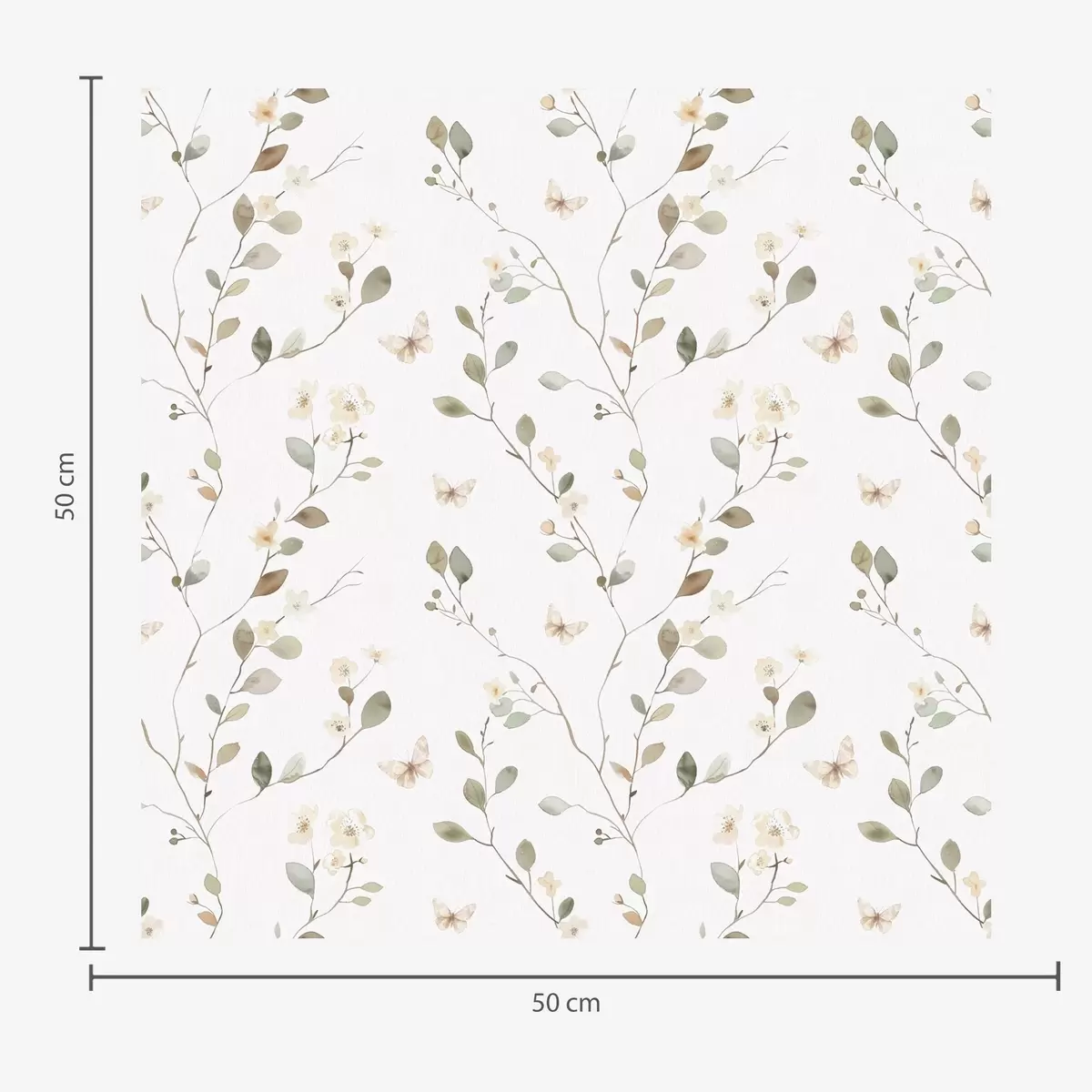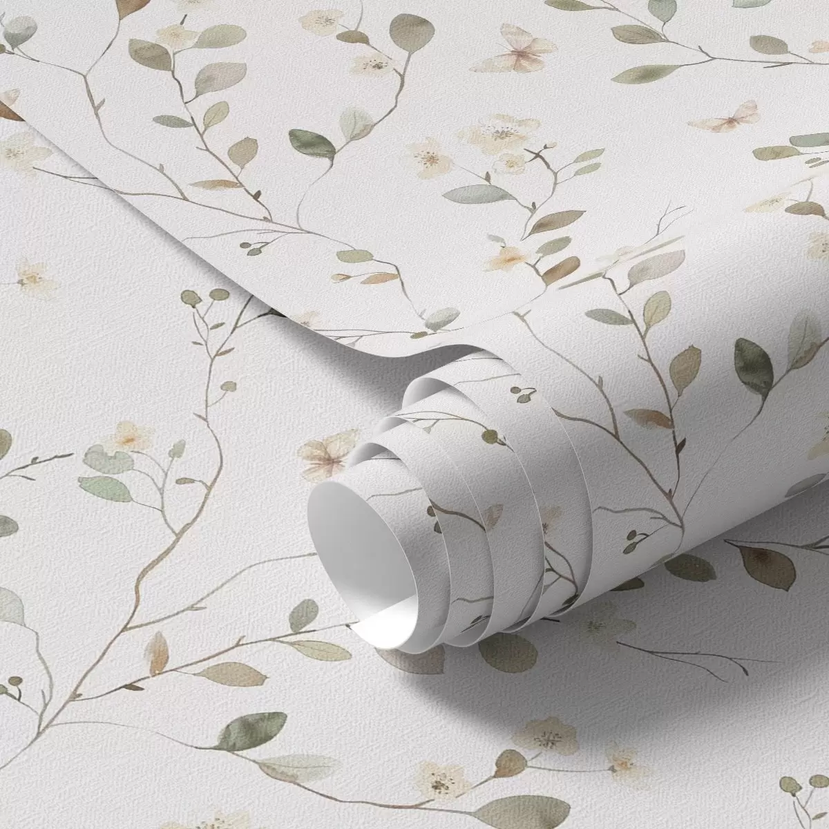 Papel tapiz Ramas finas con flores y mariposas sobre fondo blanco Nr. a00342