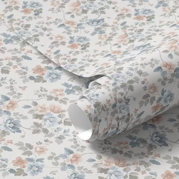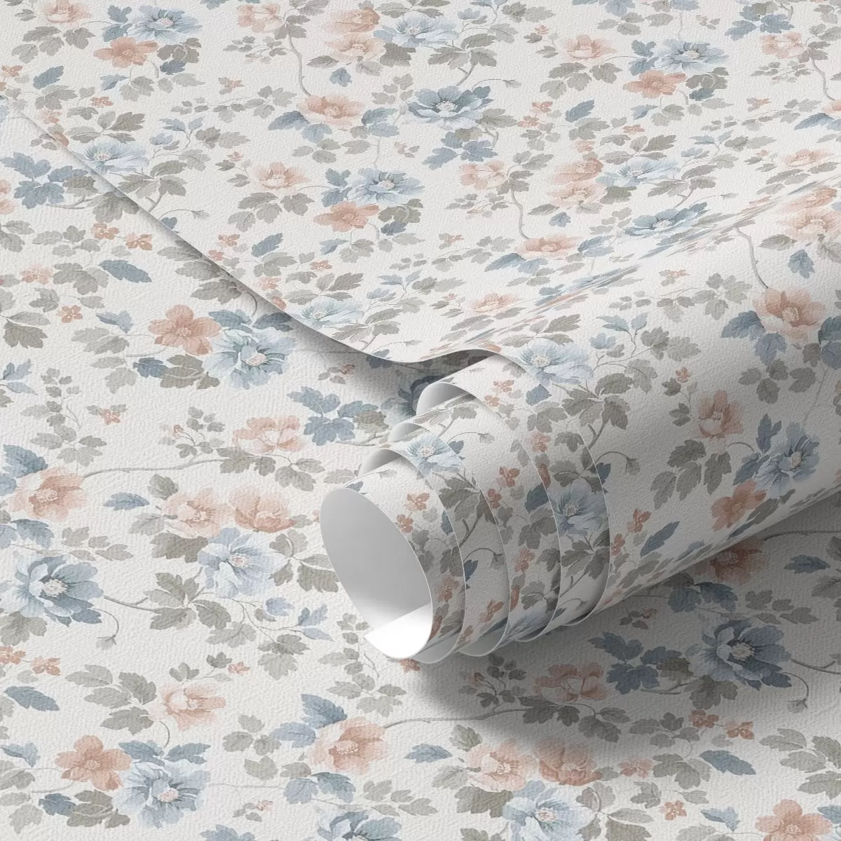 Papel tapiz Pequeño adorno floral en tonos azules y coral Nr. a00347