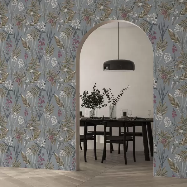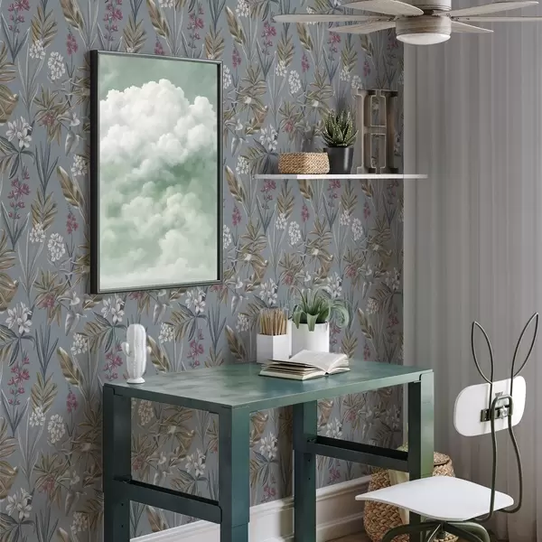 Papel tapiz Ramas florales sobre fondo gris azulado Nr. a00350