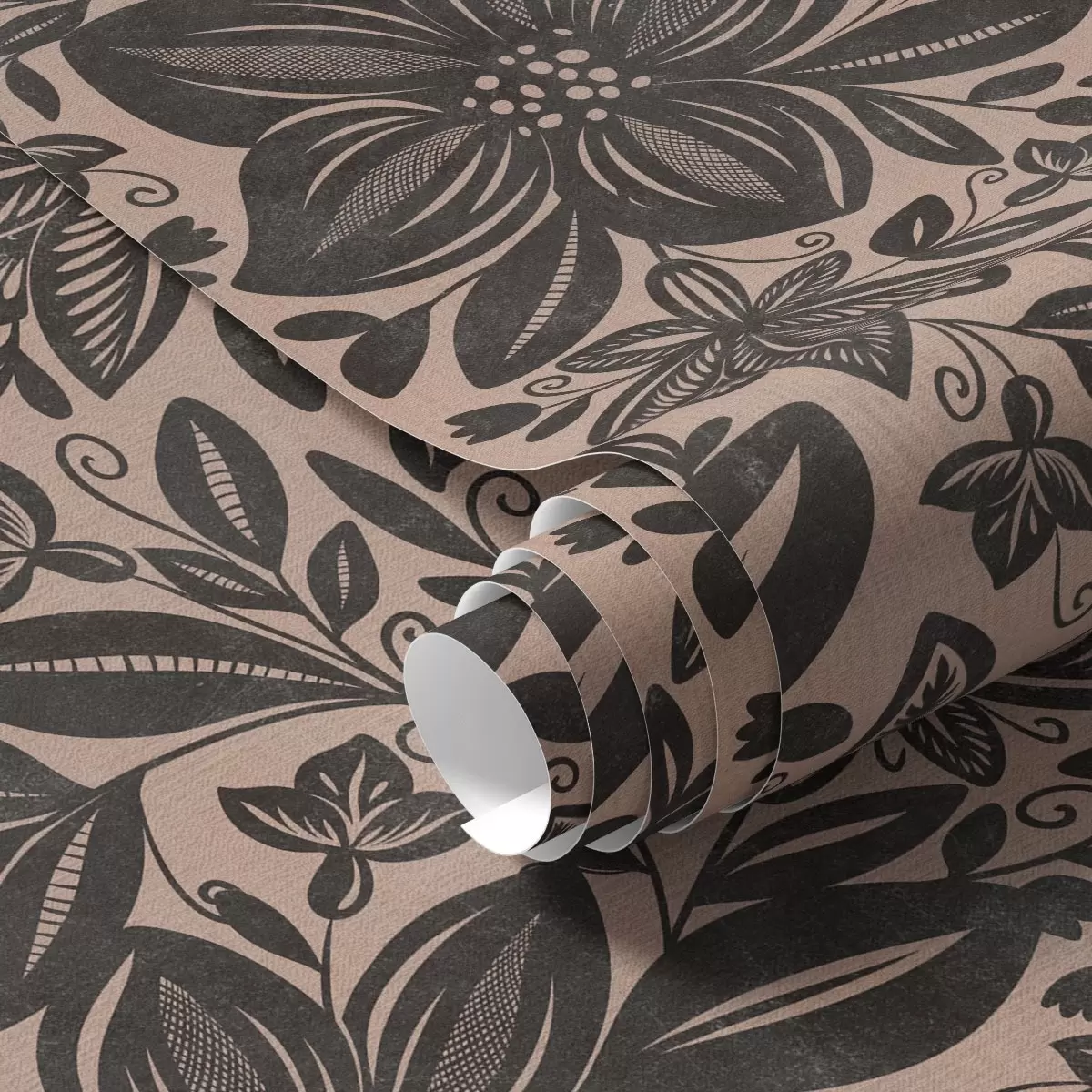Papel tapiz Estampado floral étnico negro y rosa y estampado floral étnico rosa Nr. a00351