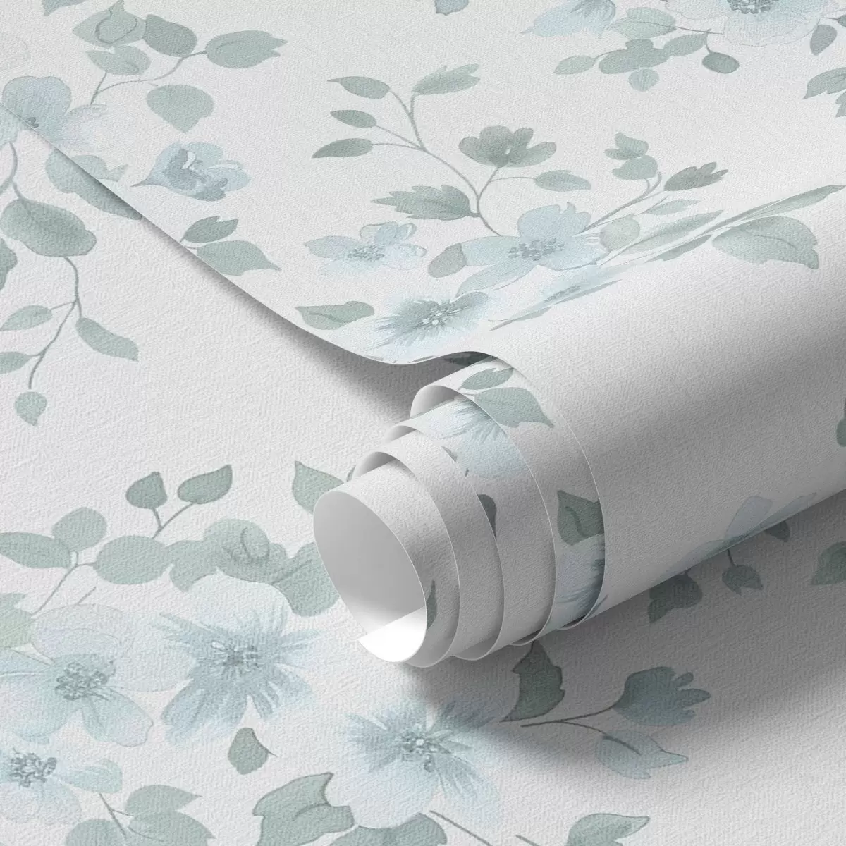 Papel tapiz Flores azul pálido sobre fondo blanco, estilo acuarela Nr. a00364