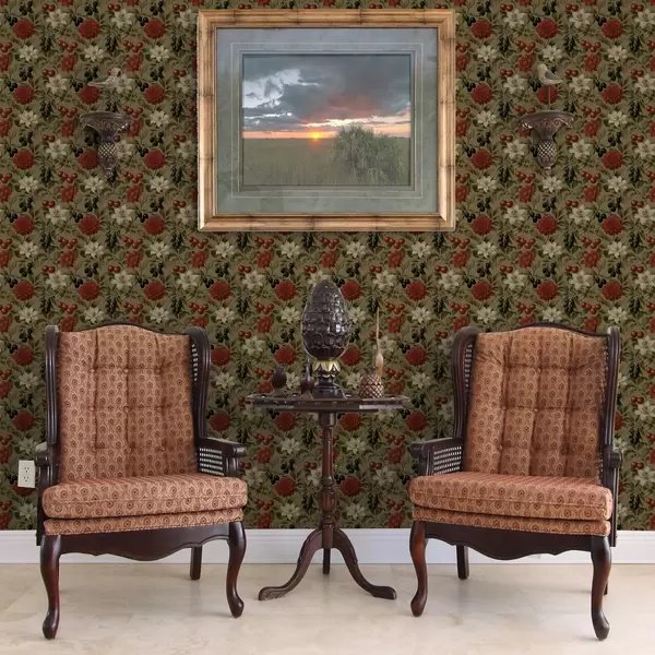 Papel tapiz Cerezas, flores y aceitunas negras Nr. a00384