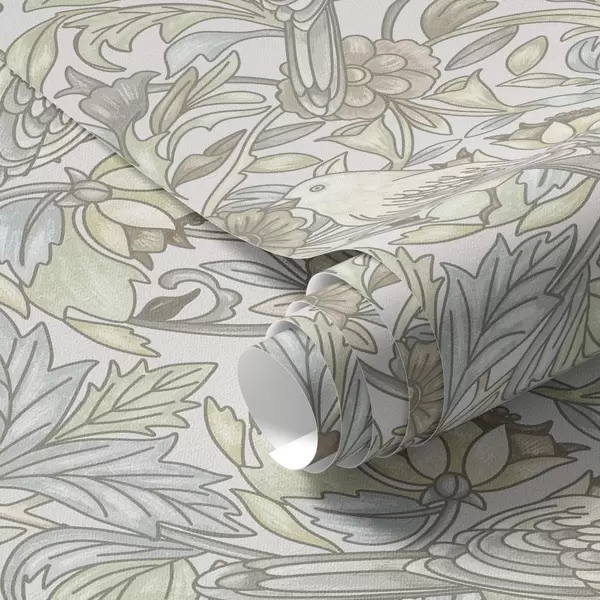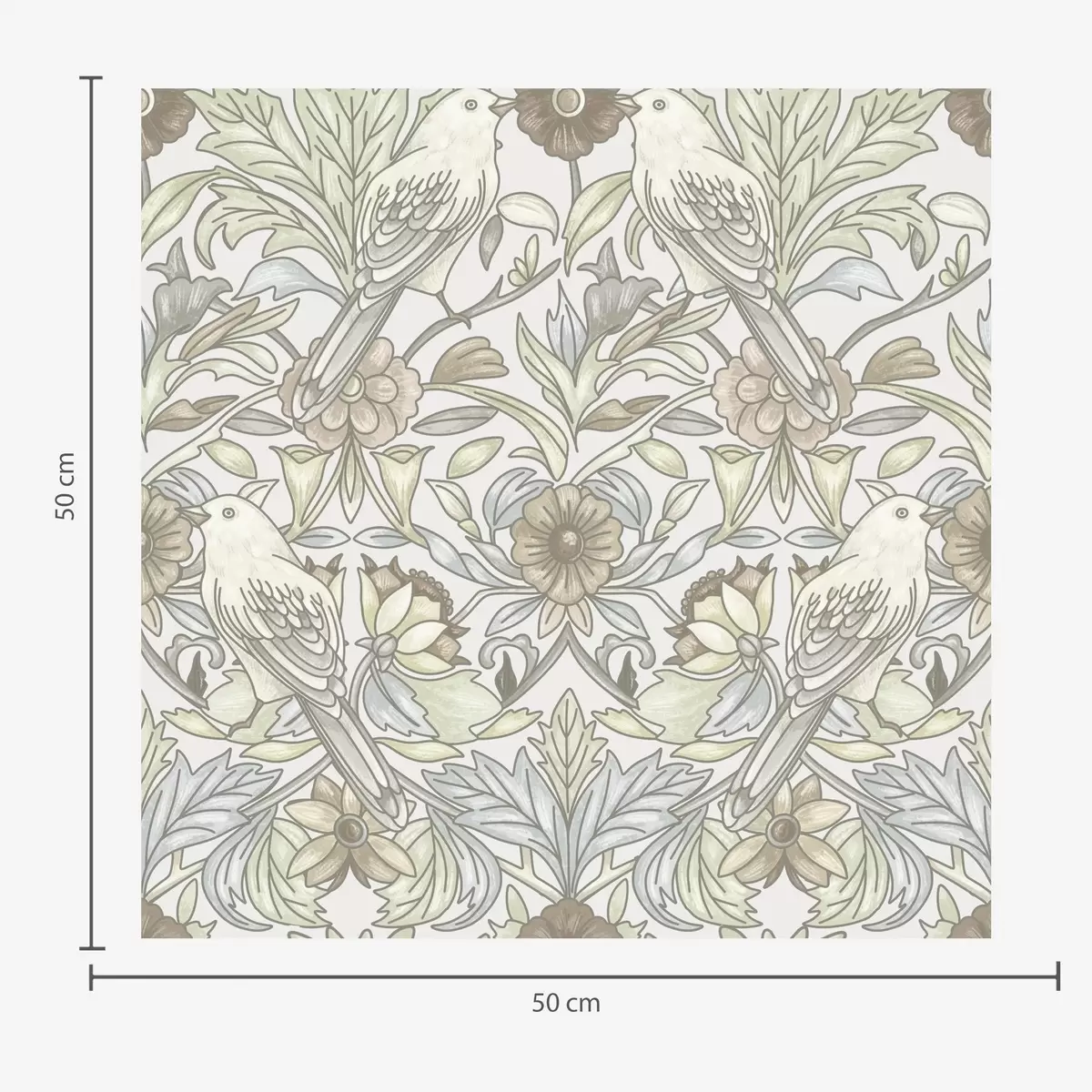 Papel tapiz Pájaros Art Nouveau y flores estilizadas en pastel Nr. a00385