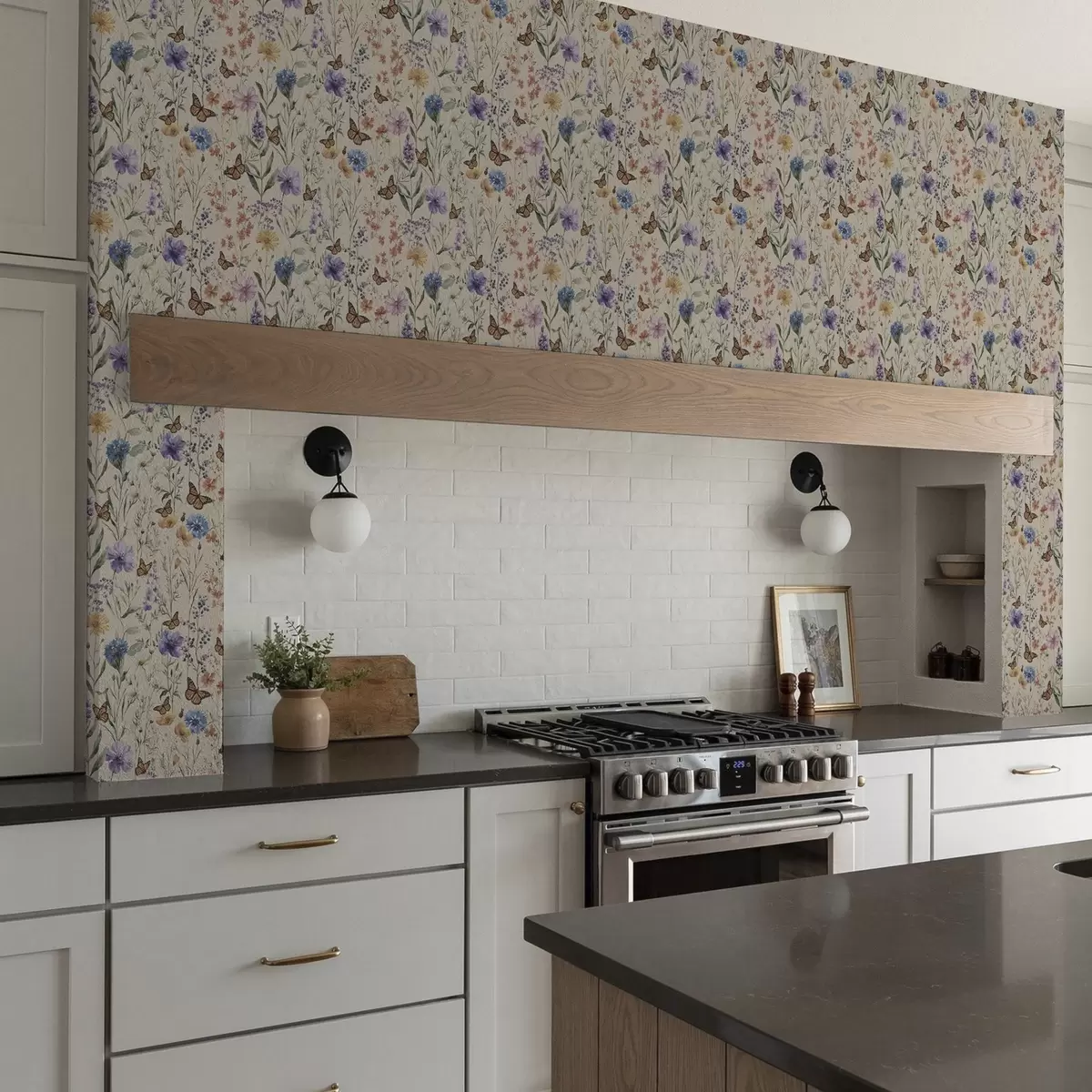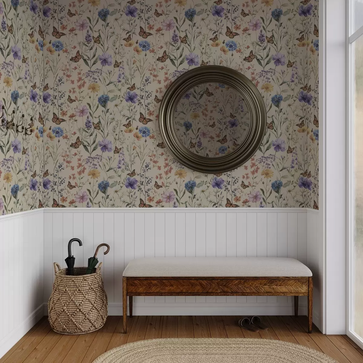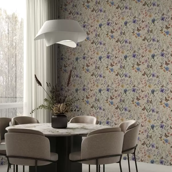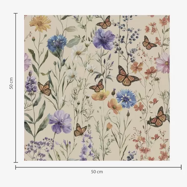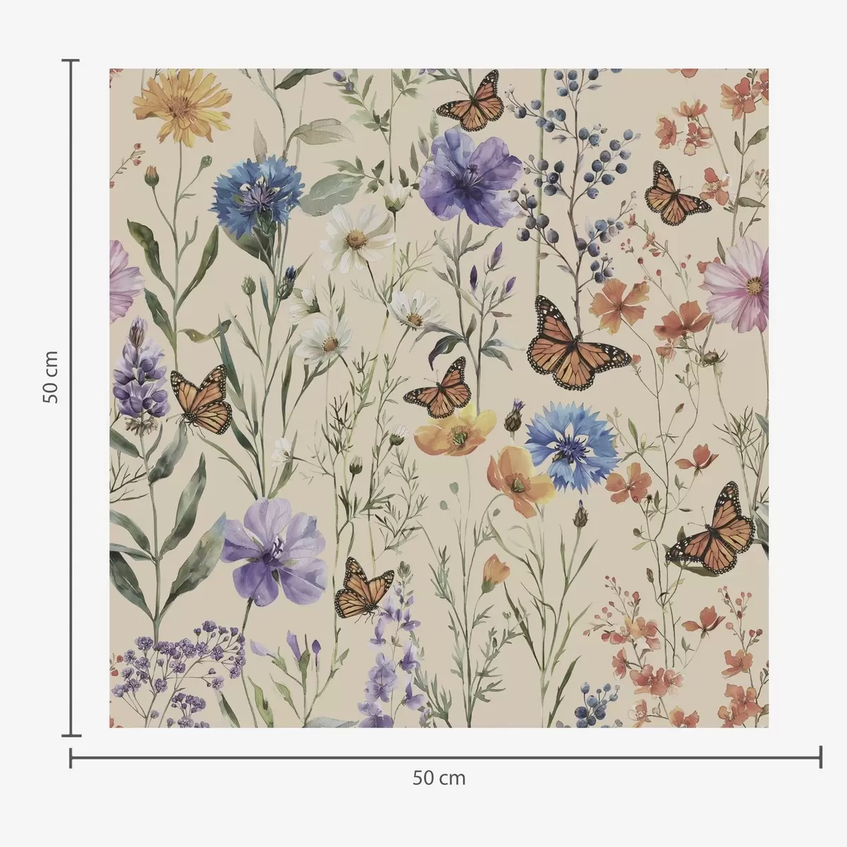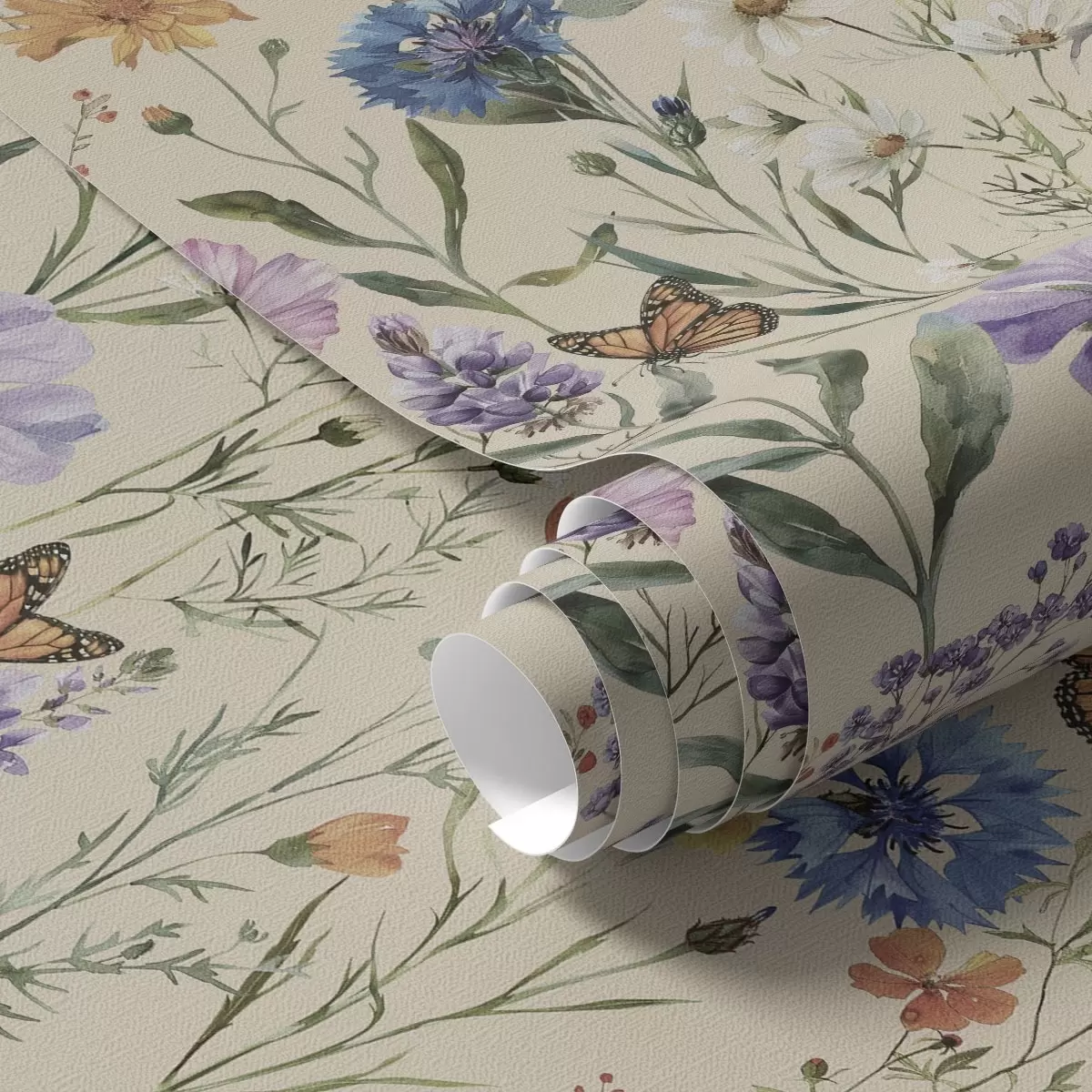 Papel tapiz Flores silvestres y mariposas en suave acuarela Nr. a00389
