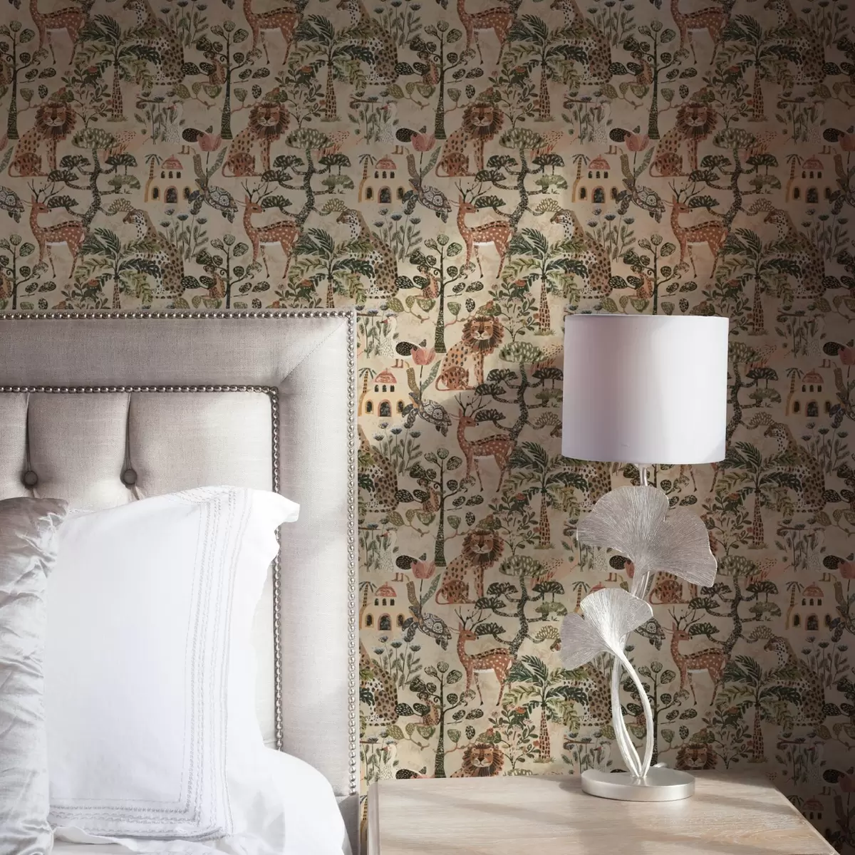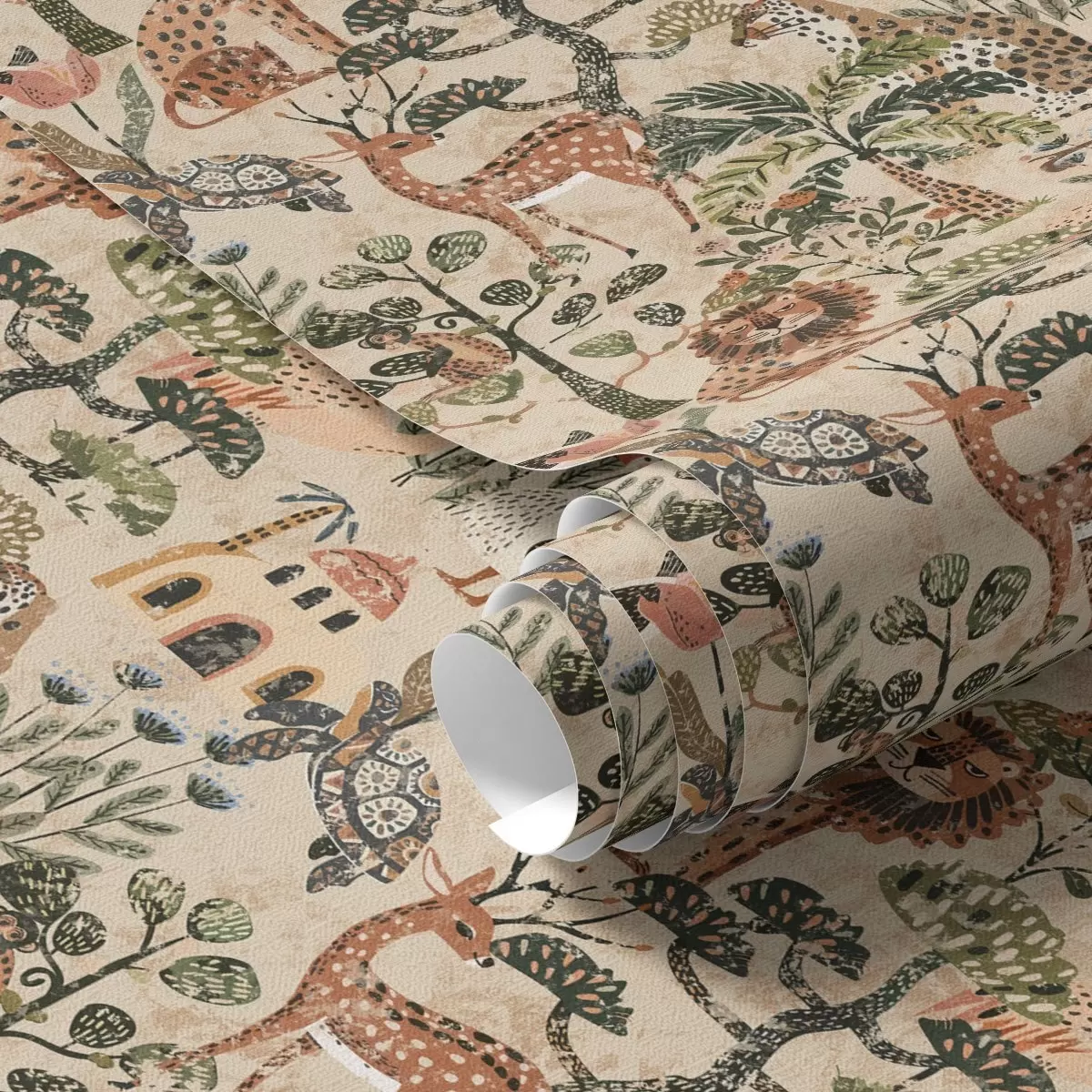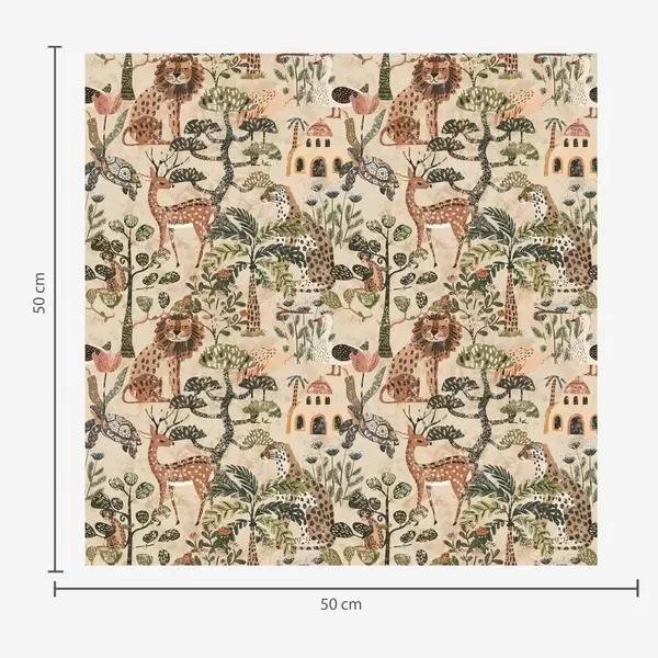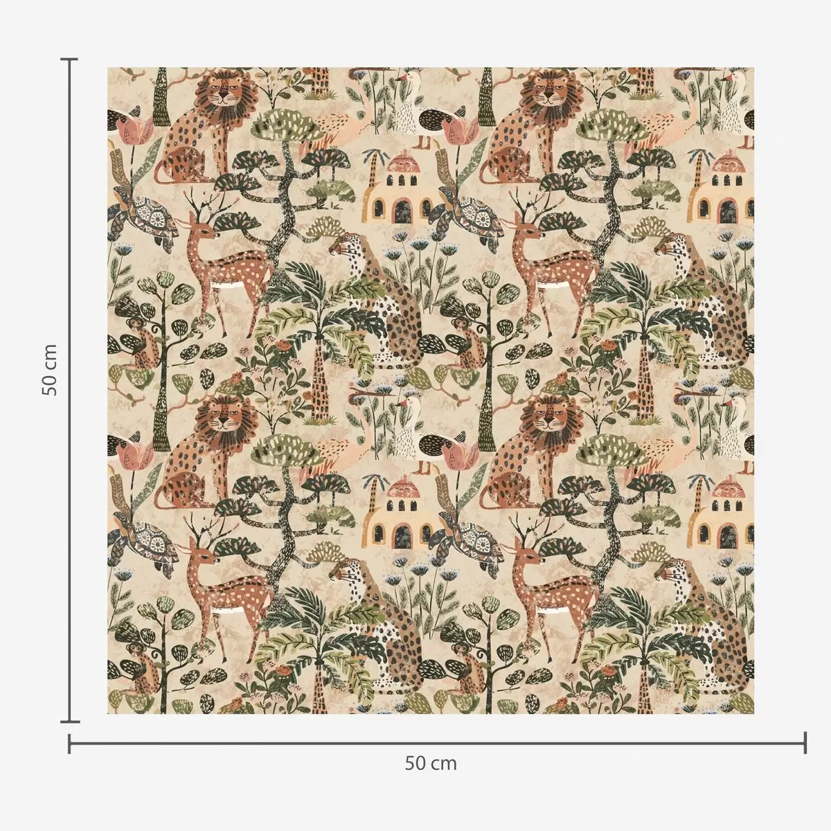 Papel tapiz Animales de safari y hojas de sabana en cálidos tonos terrosos Nr. a00392