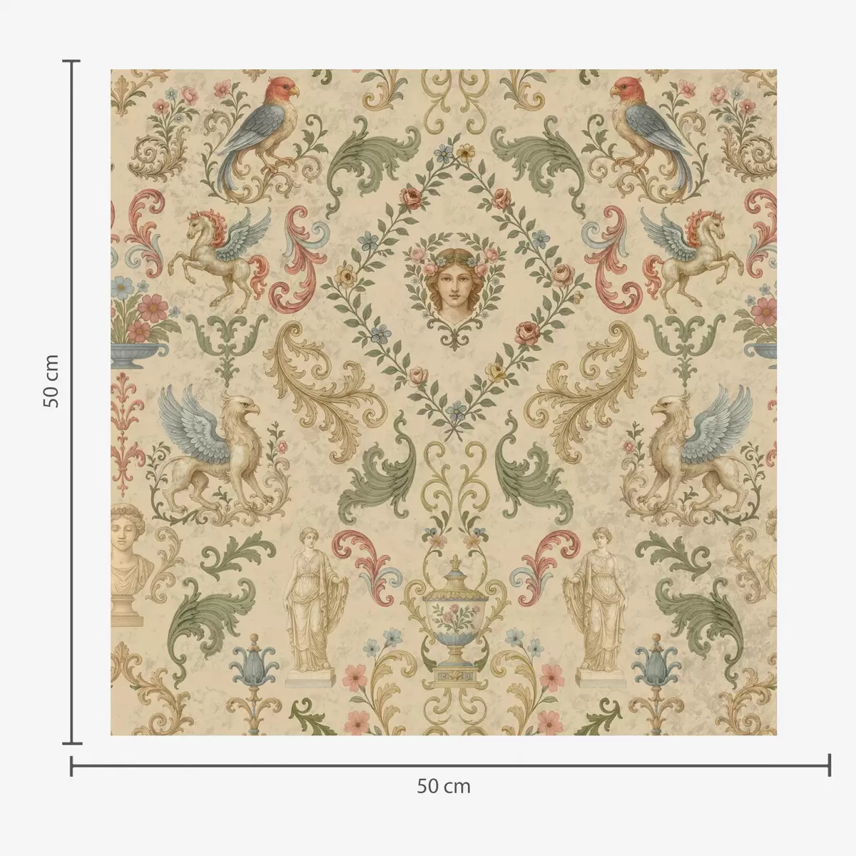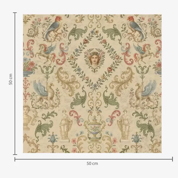 Papel tapiz Adorno vintage con grifos, flores y figuras Nr. a00402