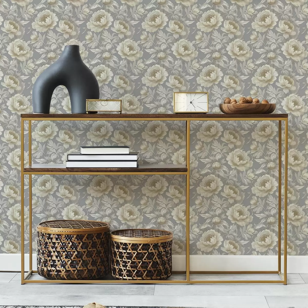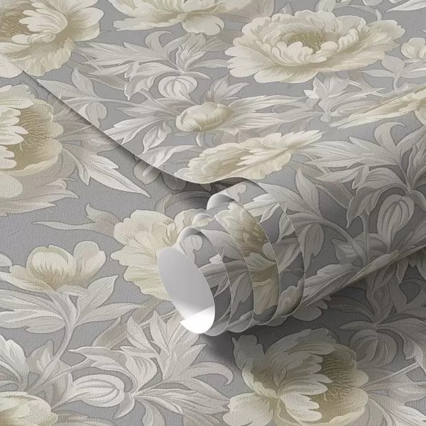 Papel pintado Exuberantes peonías y hojas sobre fondo gris a00403