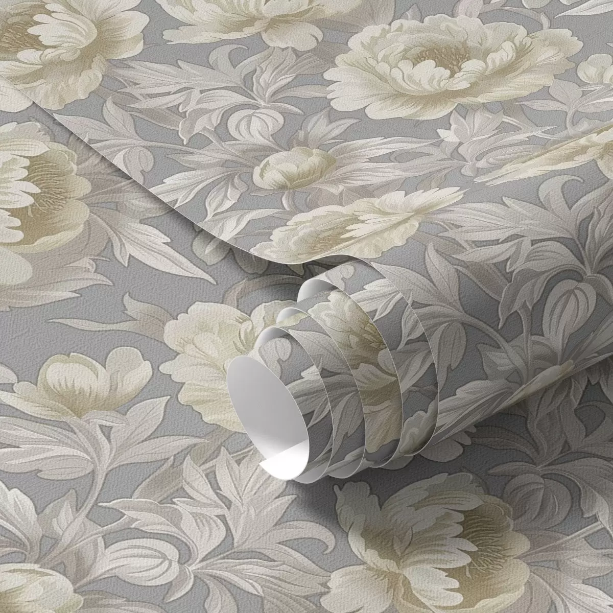 Papel tapiz Exuberantes peonías y hojas sobre fondo gris Nr. a00403
