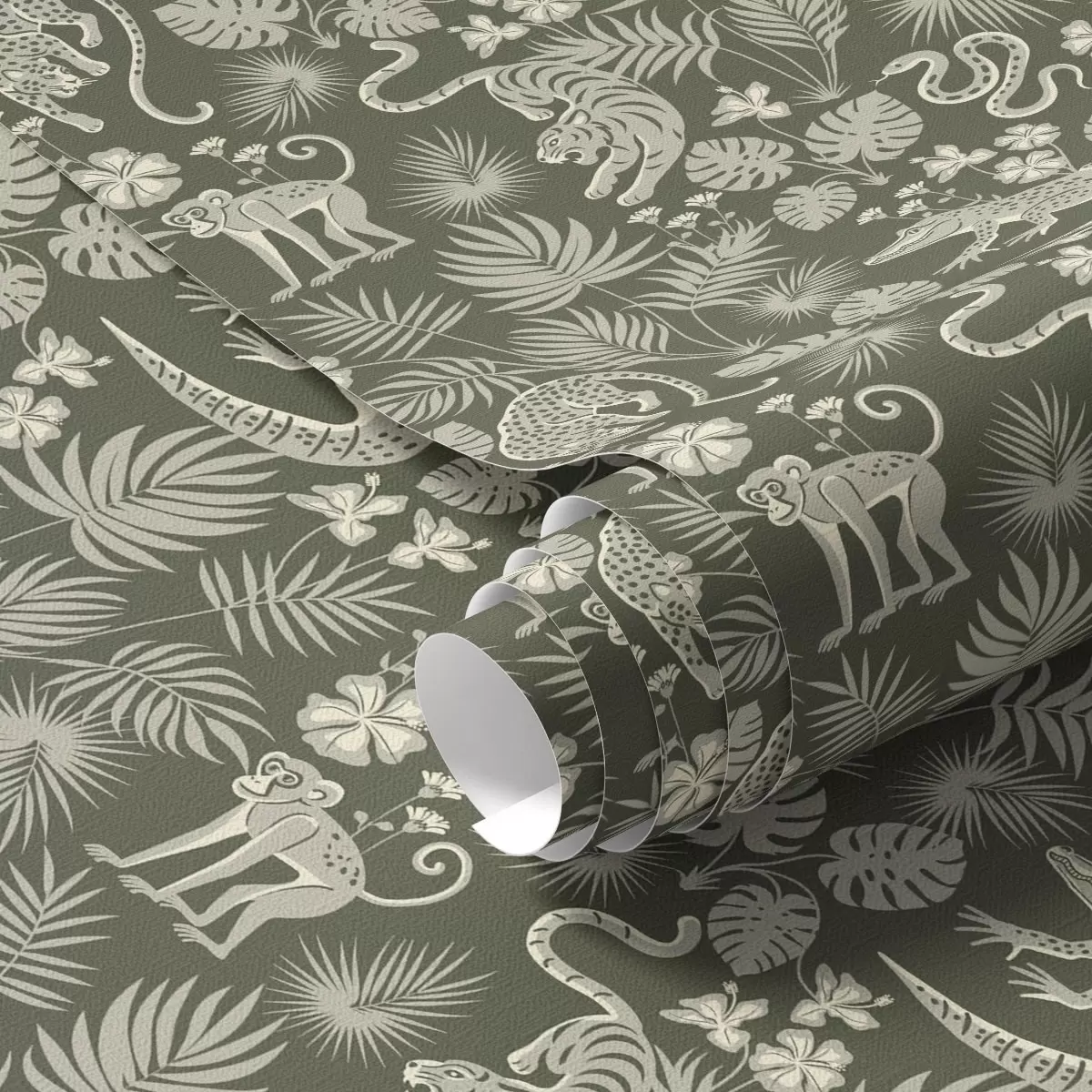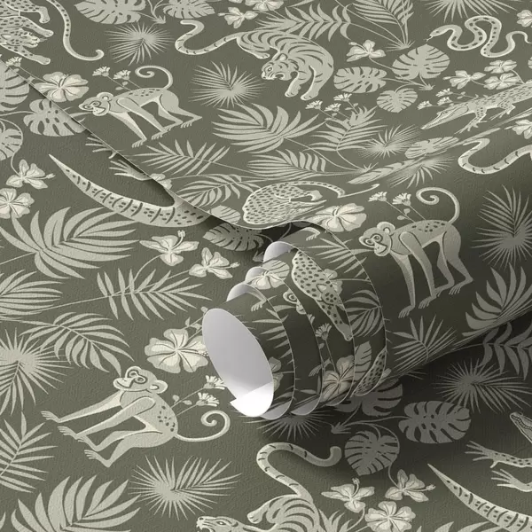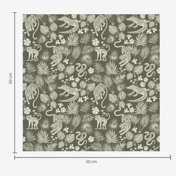 Papel tapiz Siluetas de animales salvajes entre hojas tropicales Nr. a00404
