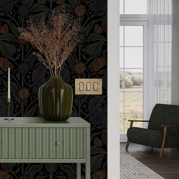 Papel tapiz Adorno floral oscuro con detalles naranjas Nr. a00411