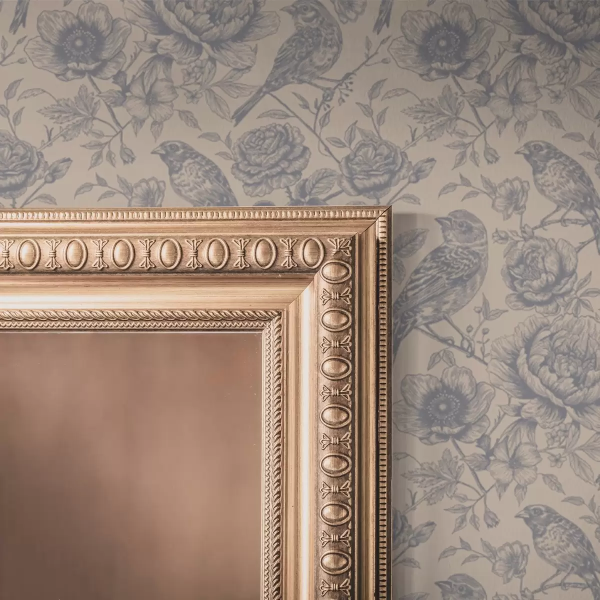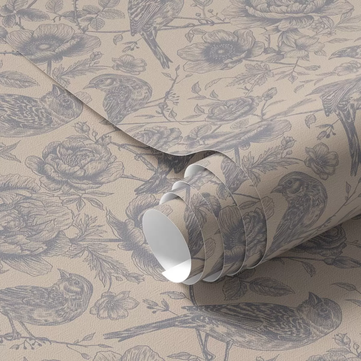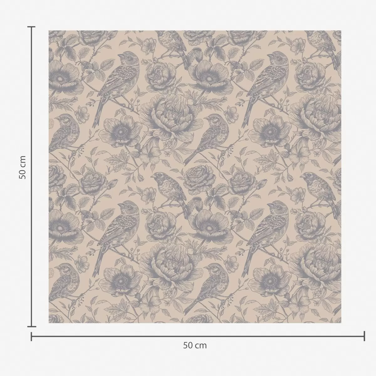 Papel tapiz Pájaros y flores vintage sobre fondo beige suave Nr. a00423