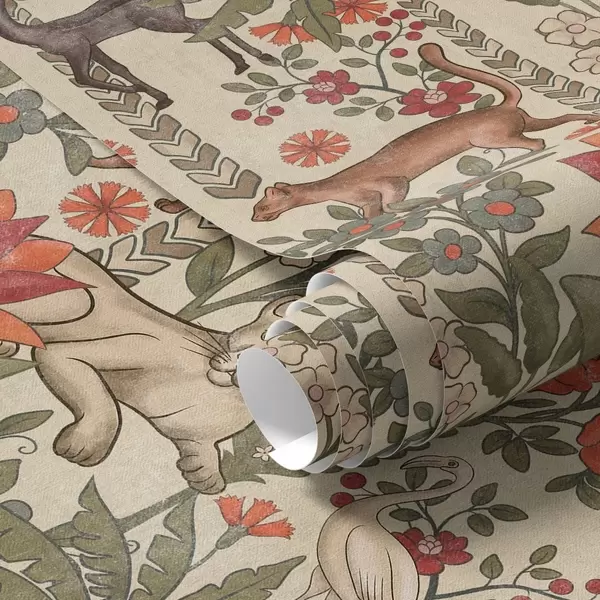 Papel tapiz Estilo retro: Animales y flores sobre fondo vintage Nr. a00431